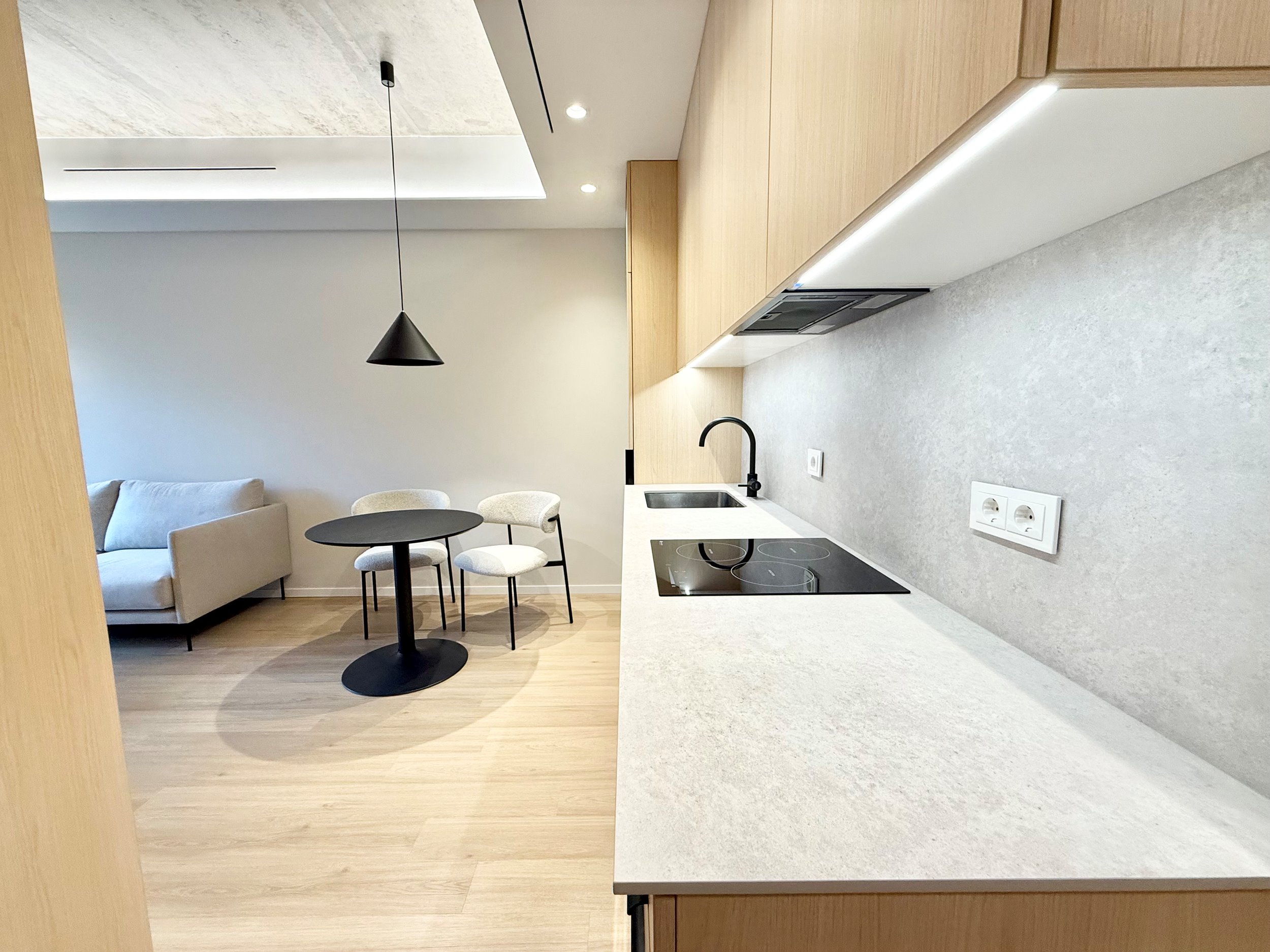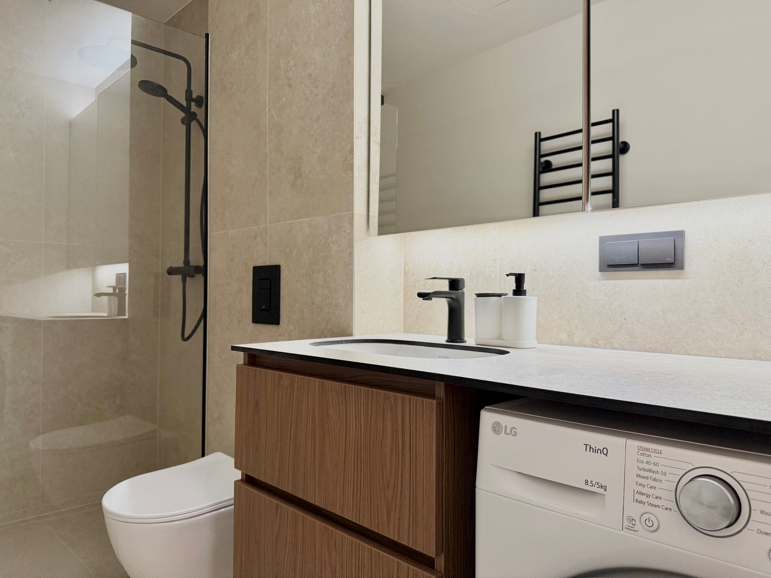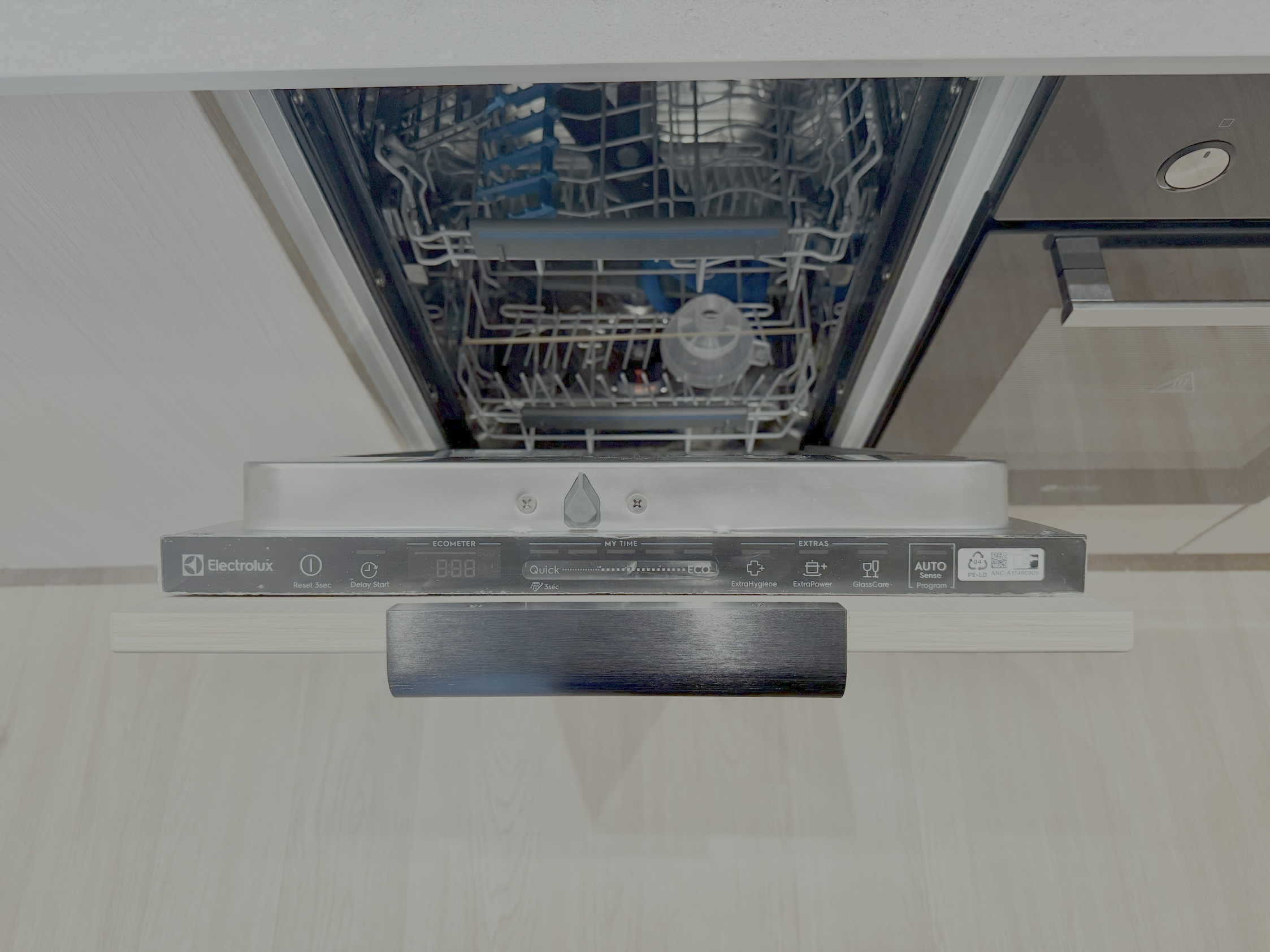 Bute yra visi reikalingiausi baldai, skalbimo mašina su džiovinimo funkcija, indaplovė, šaldytuvas su šaldikliu, viryklė ir t.t.