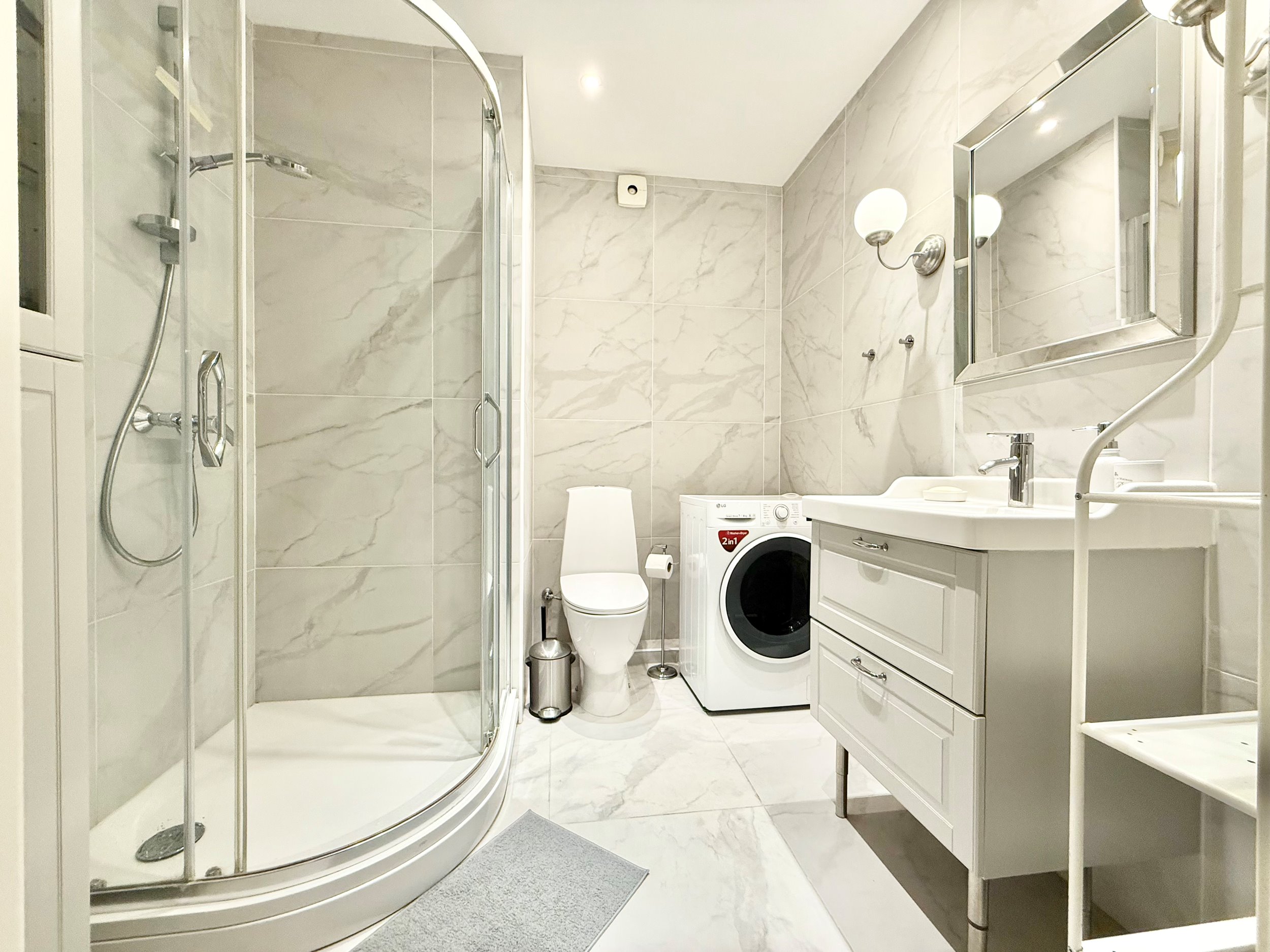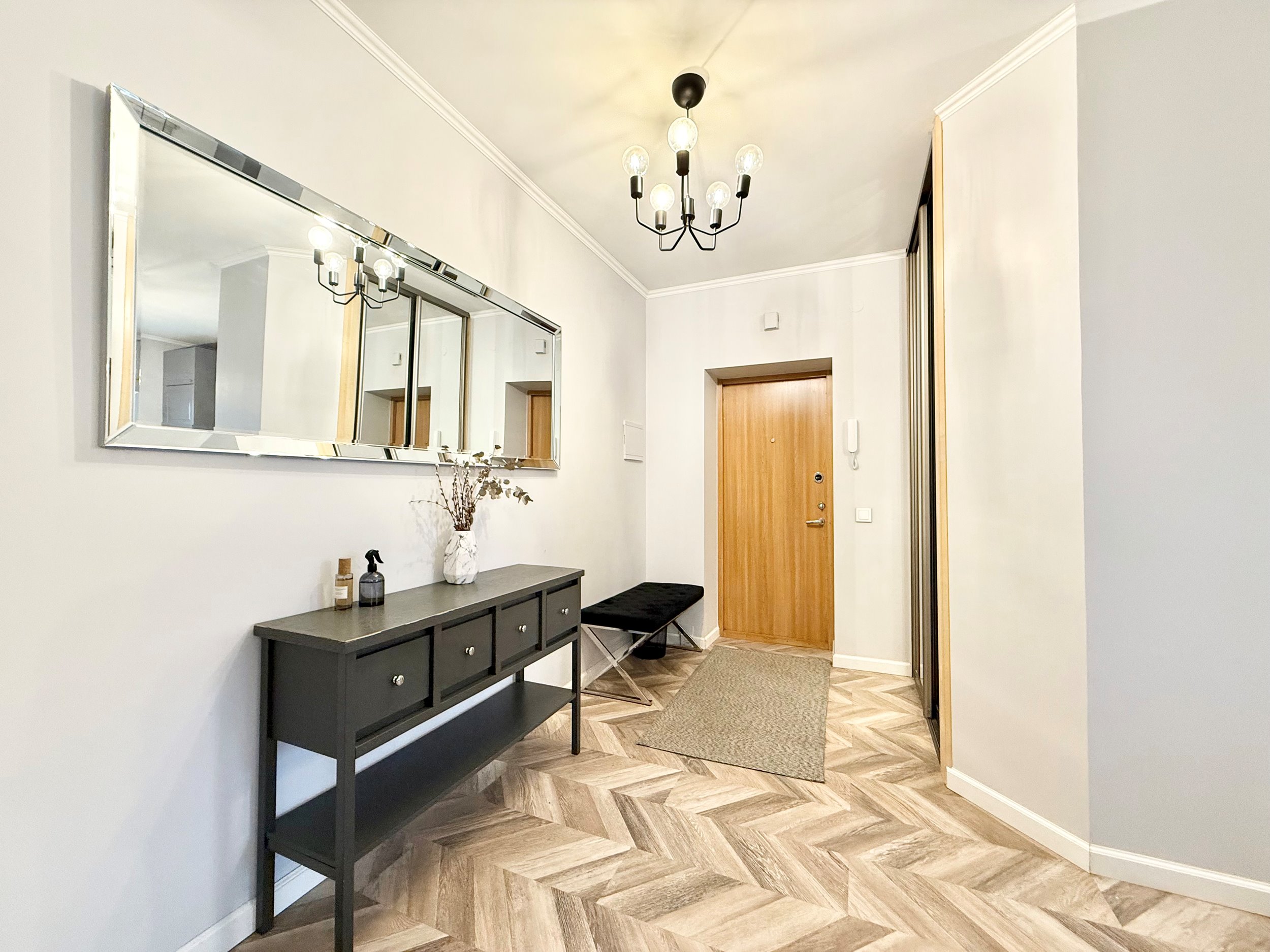 Bute yra visi reikalingiausi baldai, sofa, kokybiška buitinė technika, indaplovė, skalbimo mašina su džiovinimo funkcija, šaldytuvas su šaldikliu, viryklė, orkaitė ir t.t.