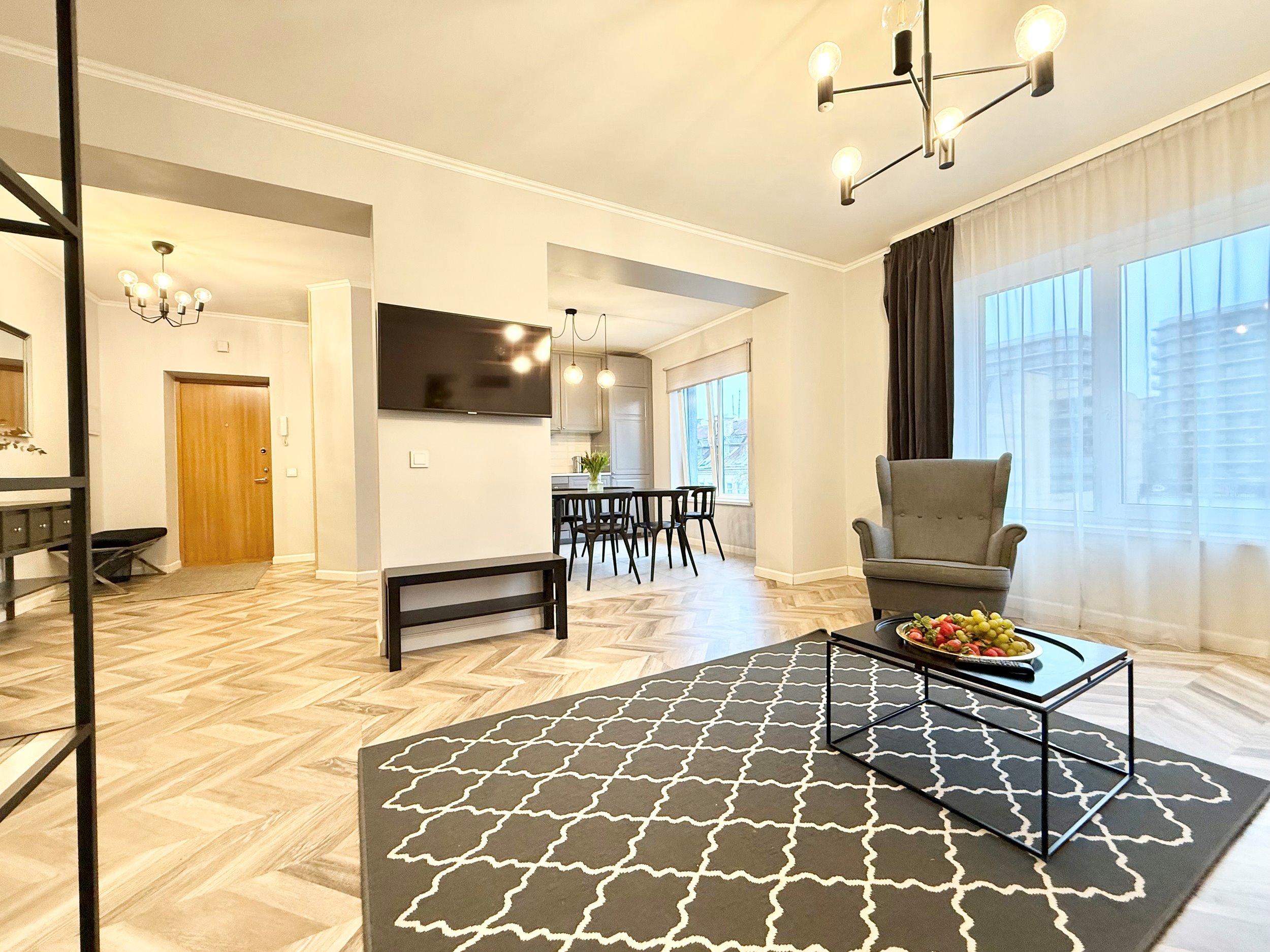 Strategiškai idealioje vietoje, Šnipiškėse, išnuomojamas 64 kv.m. ploto, erdvus 2 kambarių prabangiai įrengtas butas su aukštomis lubomis bei nemokama parkavimo vieta vidiniame kieme.