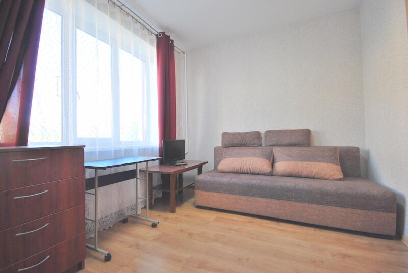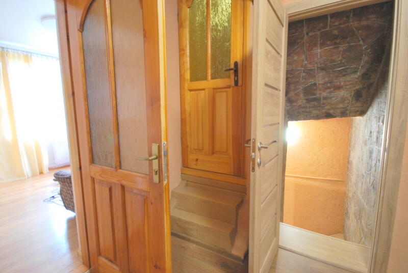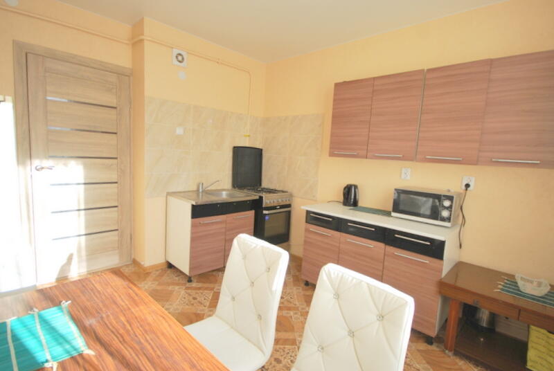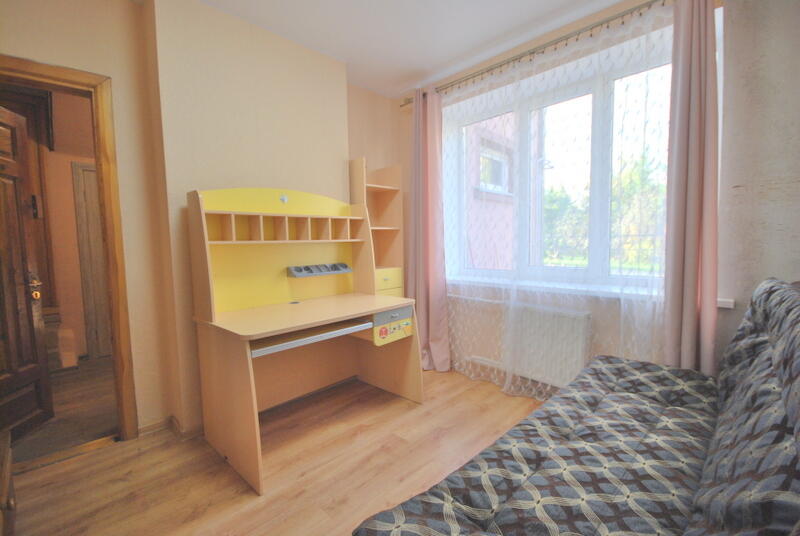 The apartment is tidy, warm, bright and sunny. Through the windows you can see a lot of greenery and the city of Vilnius in the valley.