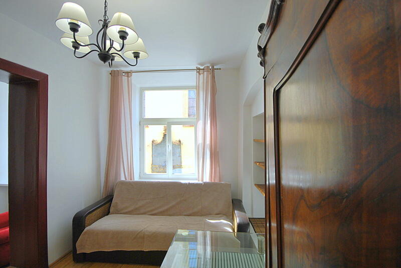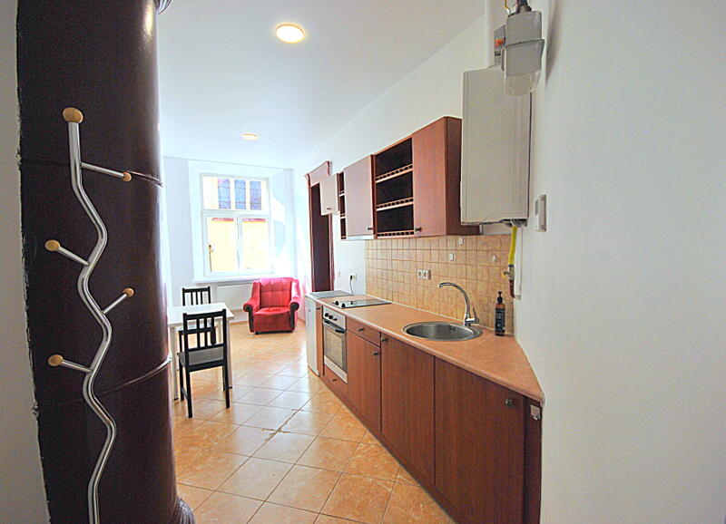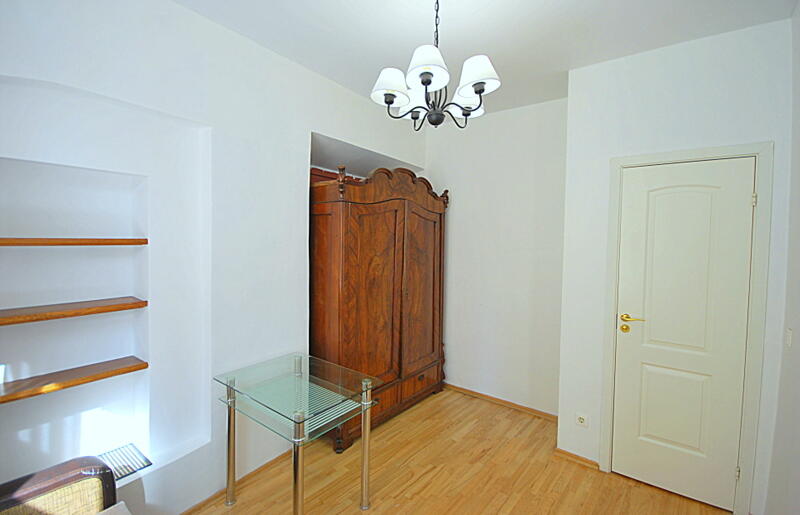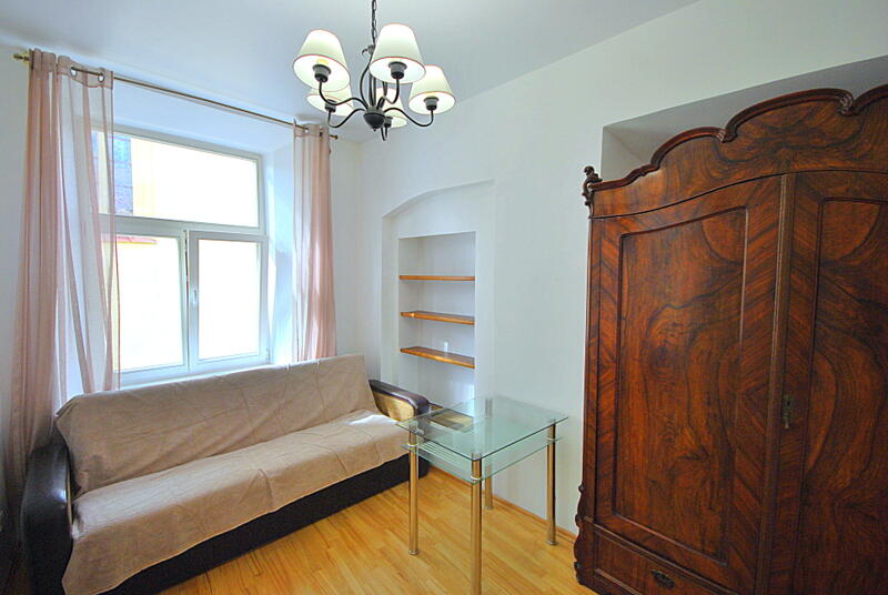 The apartment has a classic style. The living room is connected to the kitchen area and a separate room for rest and sleep. There is a solid, spacious wardrobe. Bathroom with shower cabin. Autonomous heating.