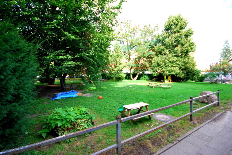 There is a well-kept garden in the courtyard, as well as a children's playground.