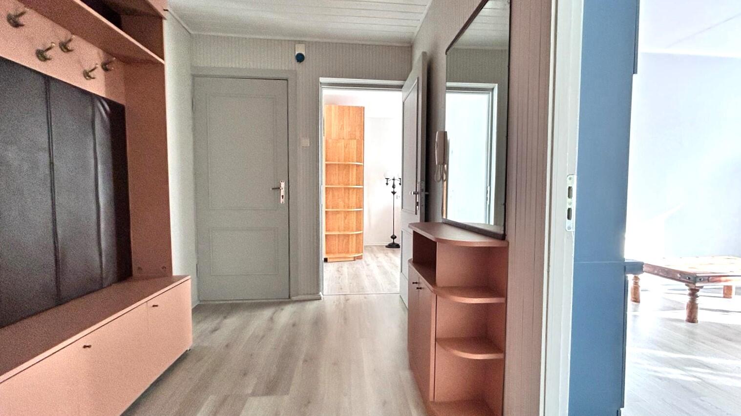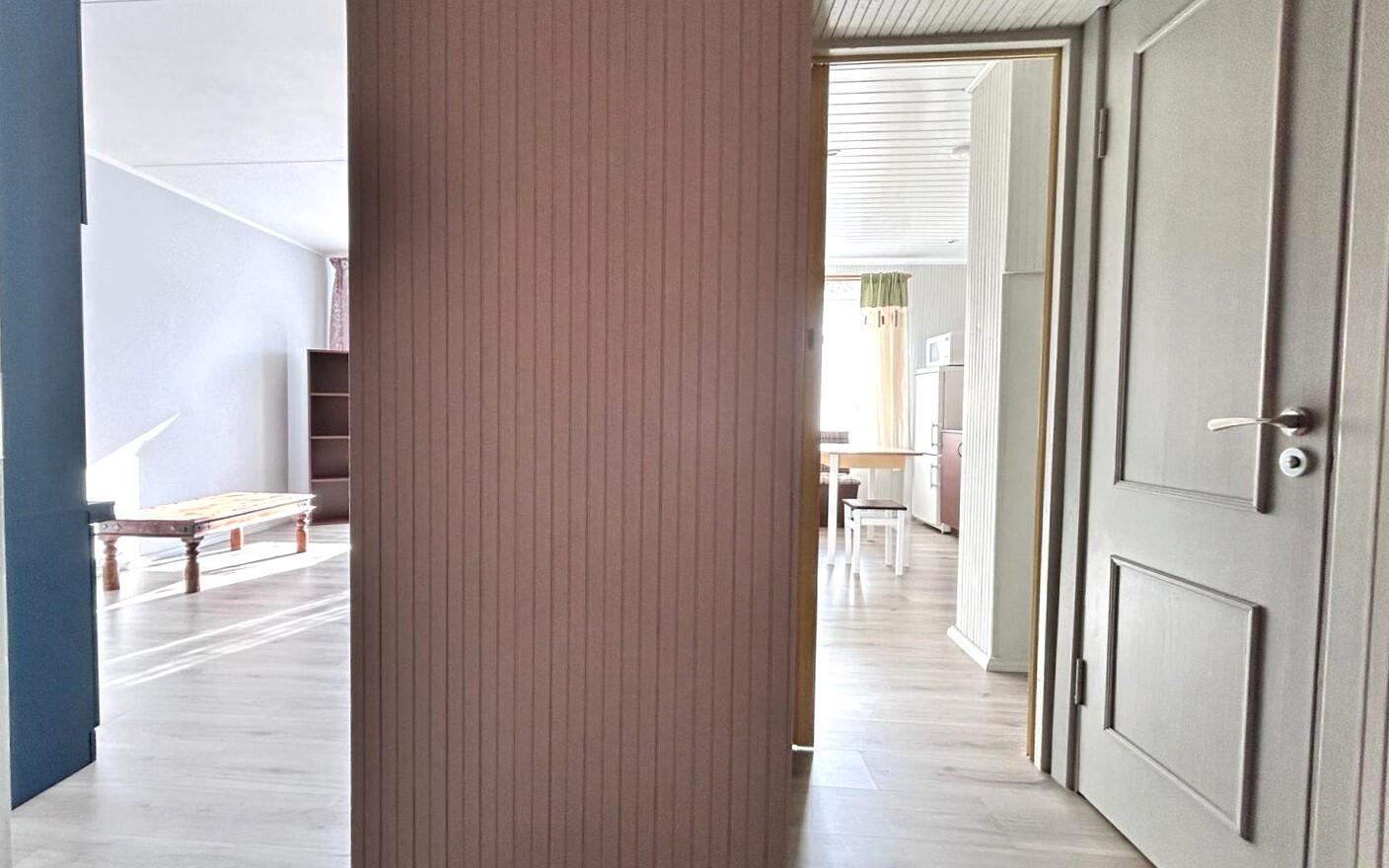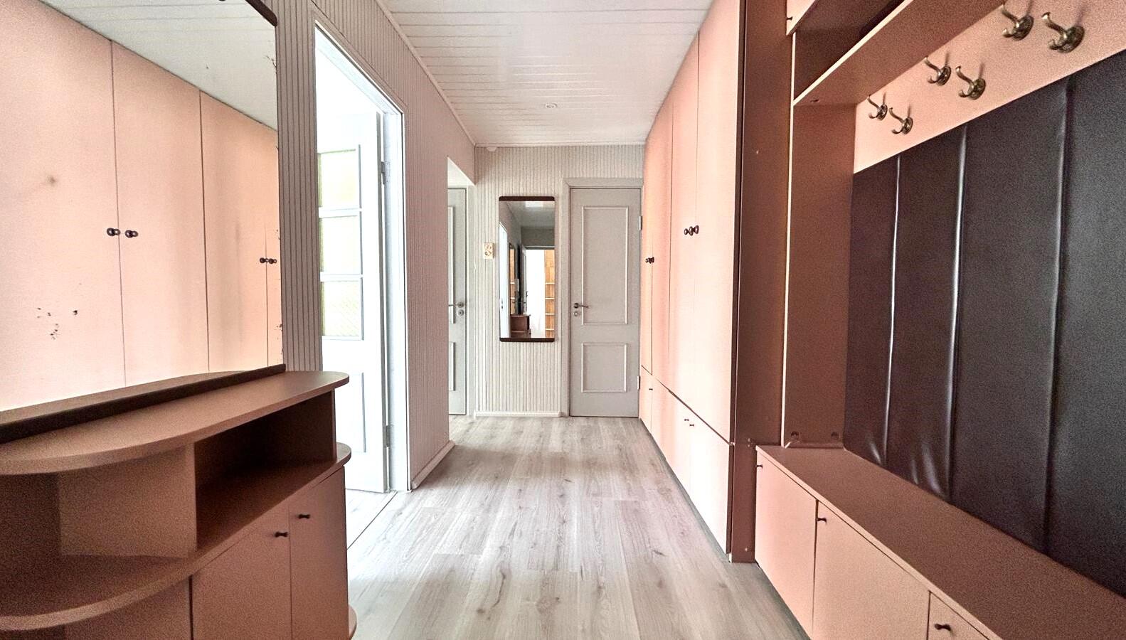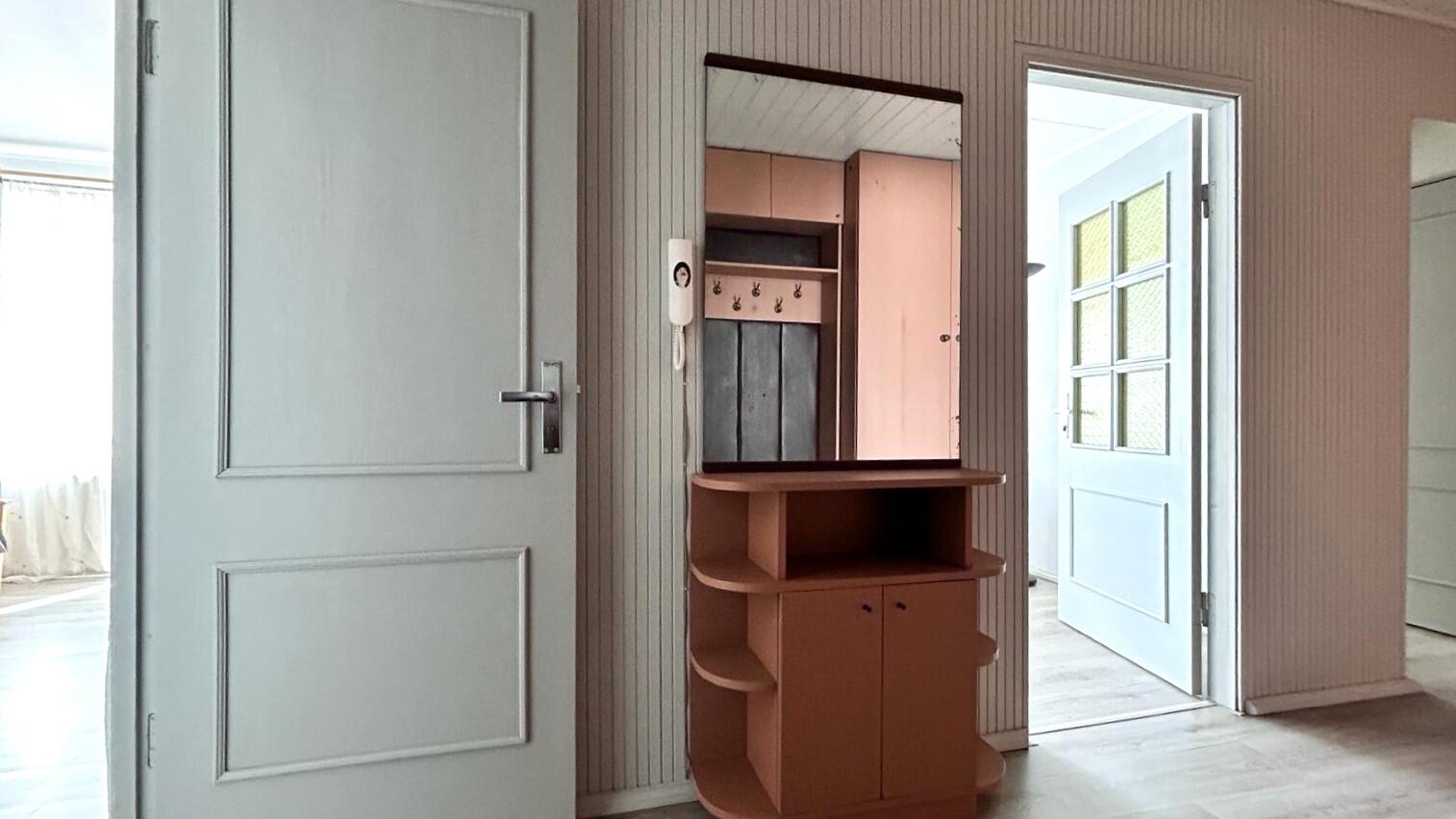 Virtuvė su valgomuoju vienoje erdvėje, du universalūs kambariai gyvenimui, darbui iš namų, studijoms, poilsiui, miegui. Patogi vonia su vonios prietaisu, atskiras WC. Talpus sandėliukas šalia virtuvės.