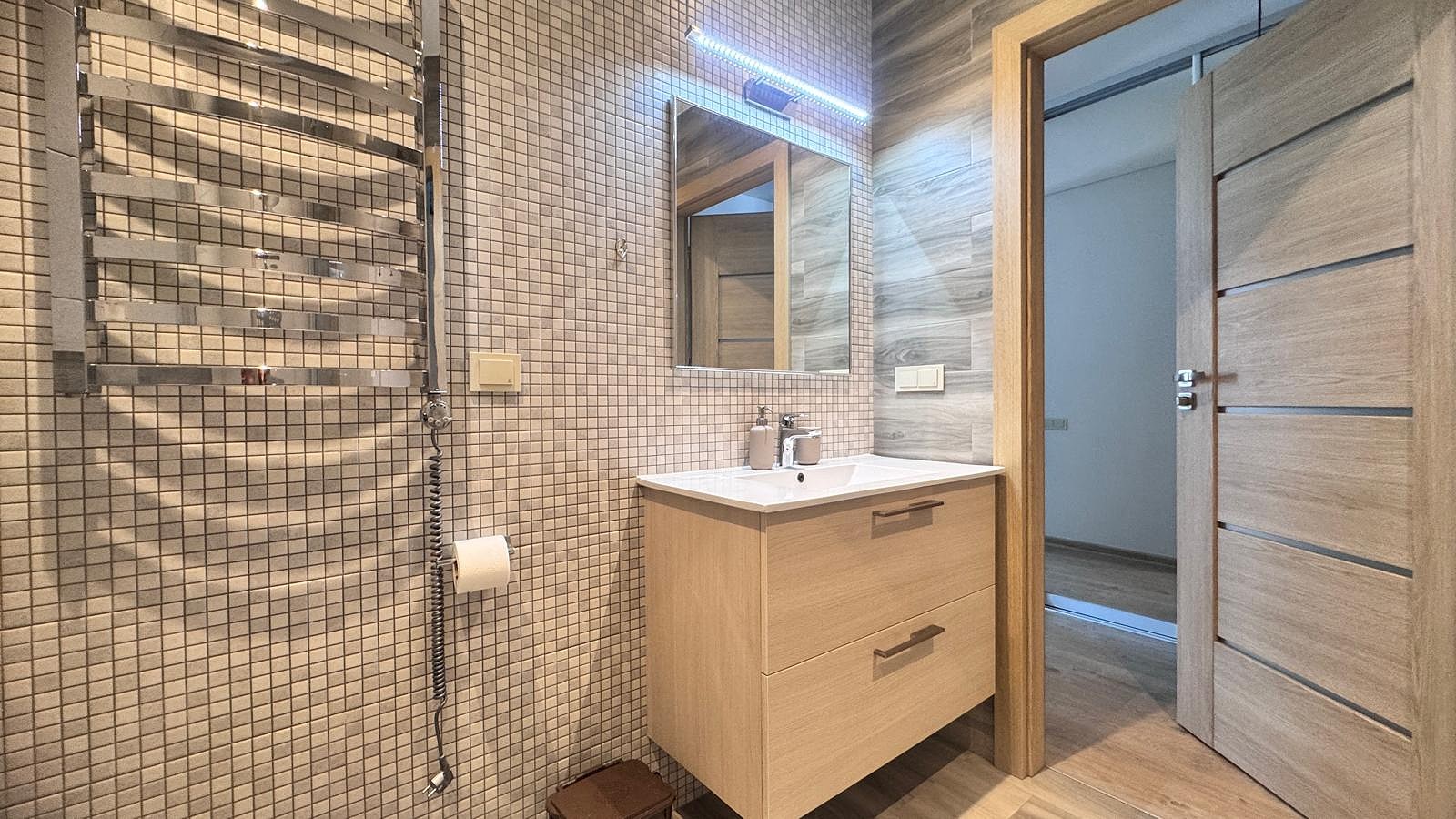 Erdvi vonia su dušu, skalbykle ir elektriniu gyvatuku;
