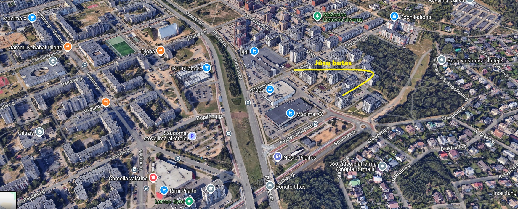 Patogus privažiavimas ir erdvios nemokamos parkavimo aikštelės aplink;