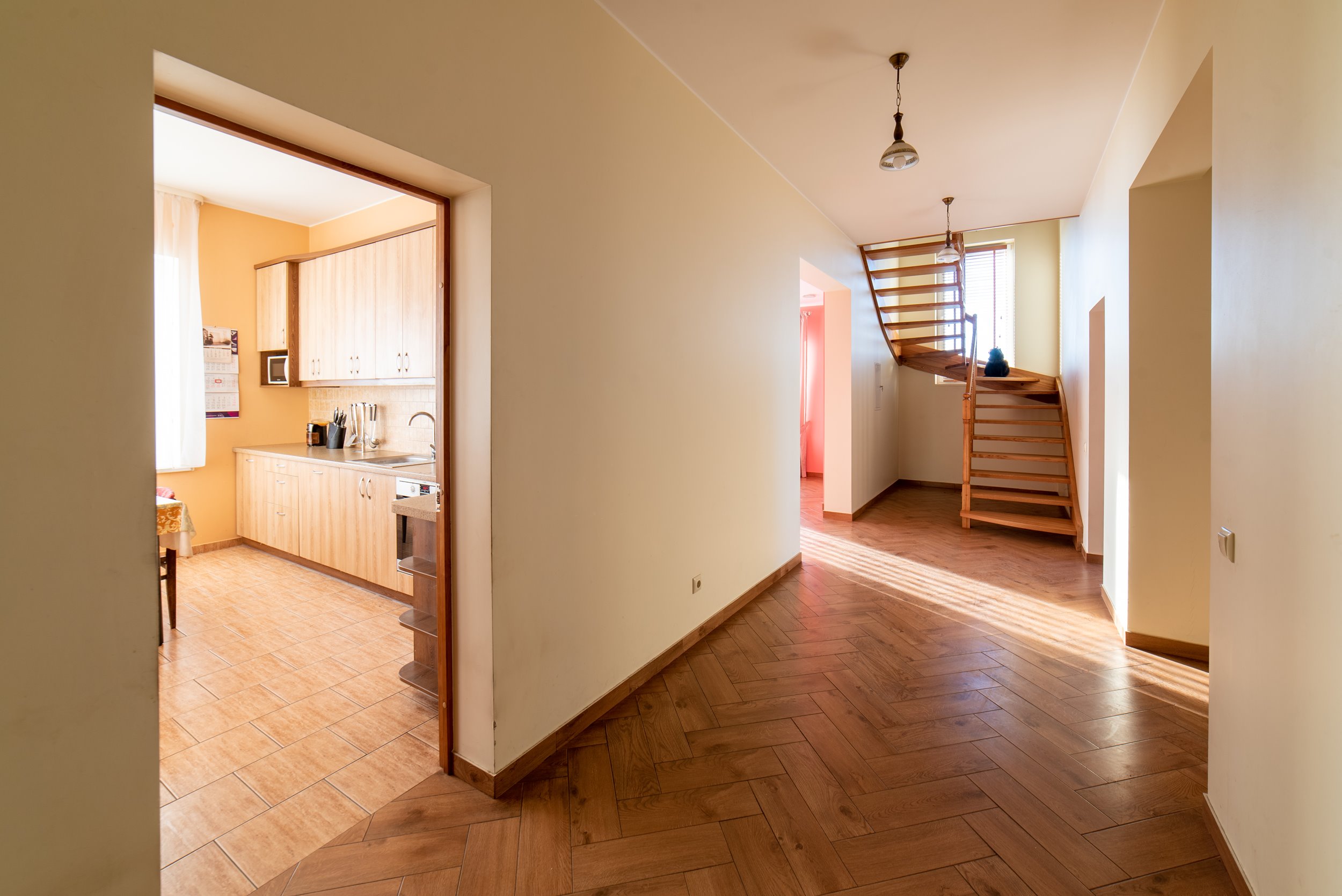 - Vidaus durys: medinės;