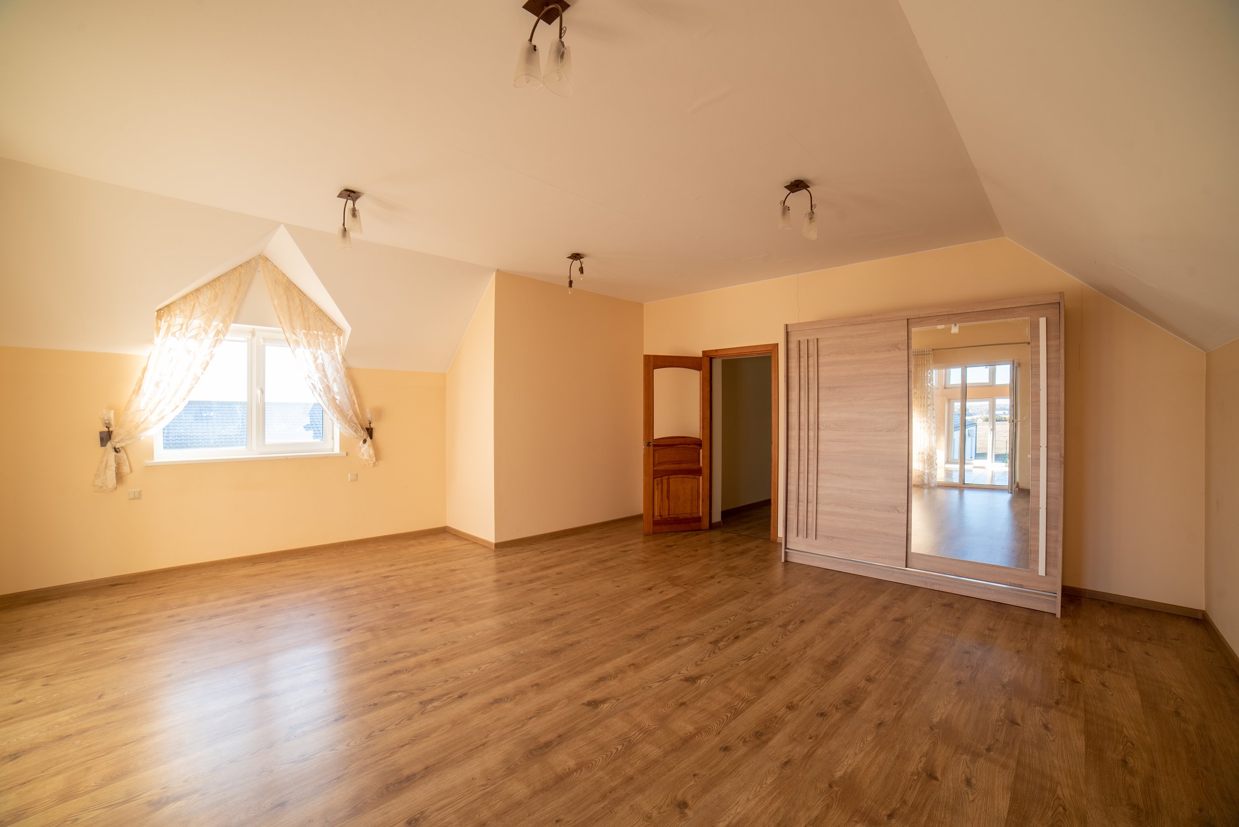 - Pirmame aukšte salės dydžio (beveik 40 kv.m.) šviesi patalpa, mansardoje 20 kv.m. oranžerija;