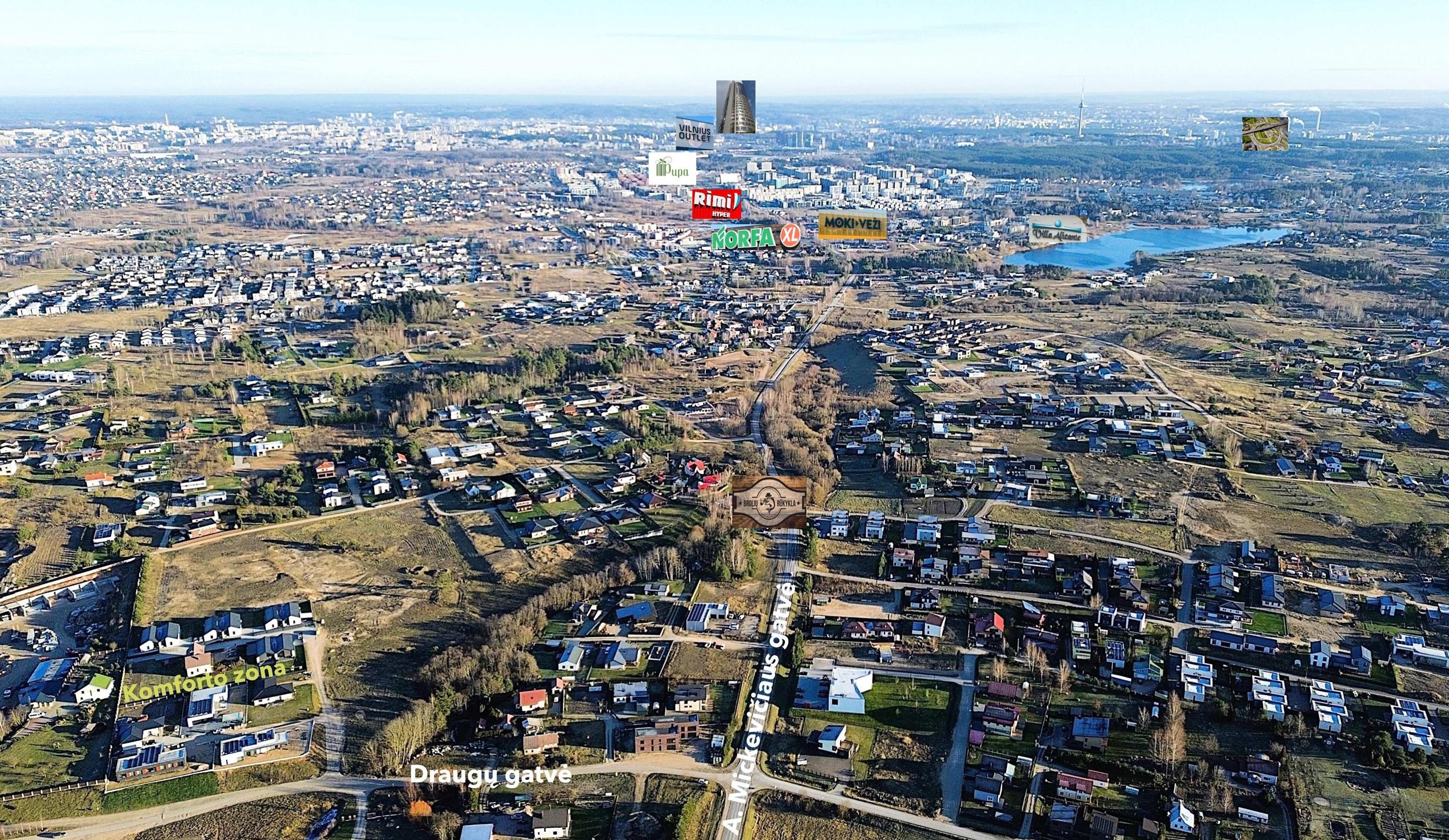 - Aplink sparčiai plėtojasi privačių namų kvartalai (perspektyvi ir potenciali vertės atžvilgiu vieta)
