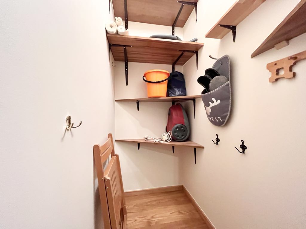 - Papildomas tamsus kambariukas / daiktų laikymo kambarys – patogu laikyti daiktams, sporto įrangai ar sezoniniams reikmenims;