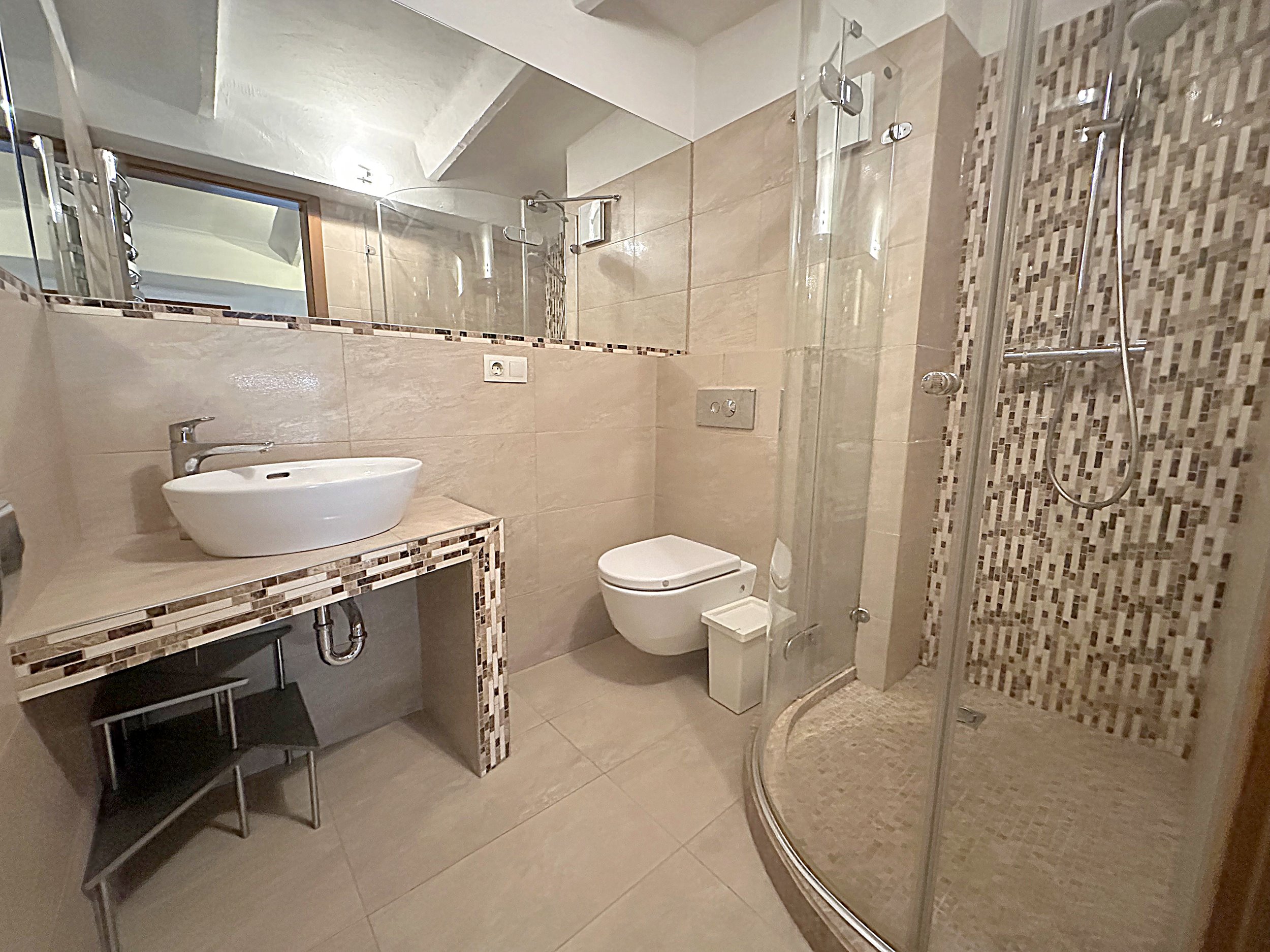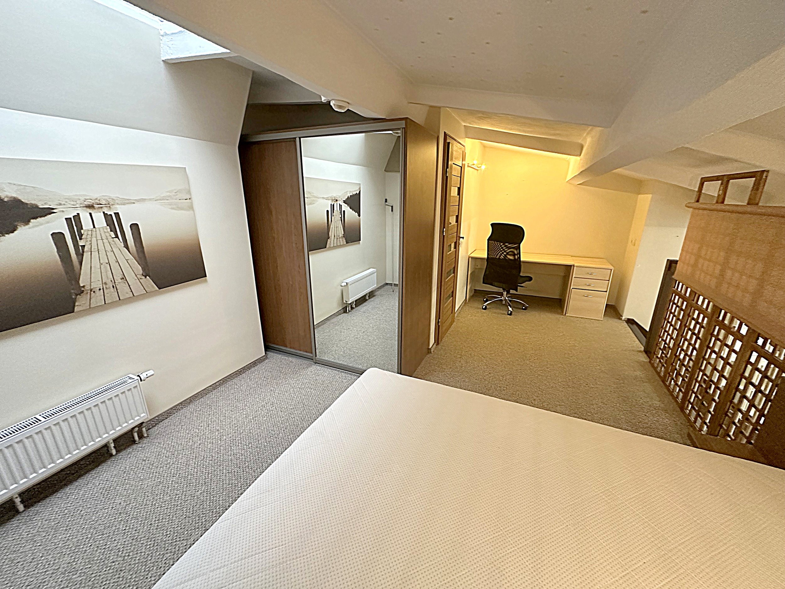 Erdvi bei šviesi svetainė kartu su virtuvės zona, jaukus miegamasis antrame aukšte, Du vonios kambariai, po viena kiekviename aukšte. Yra terasa.