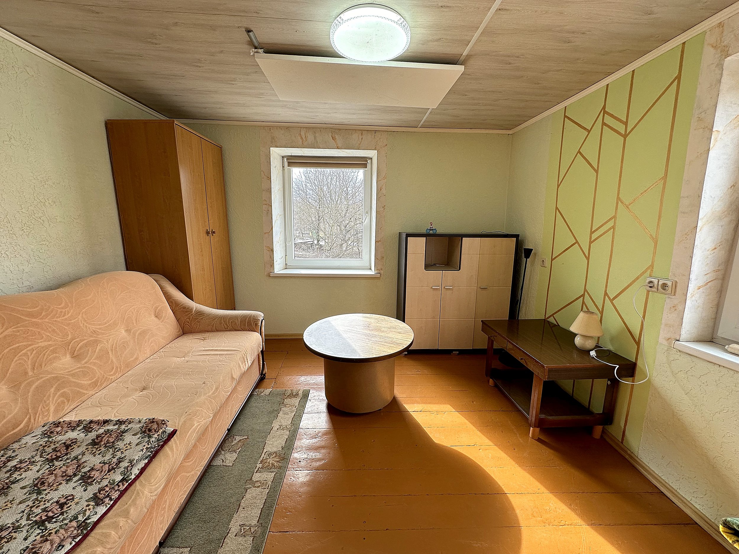 Bute visi baldai, skalbimo mašina ir kita buitinė technika.