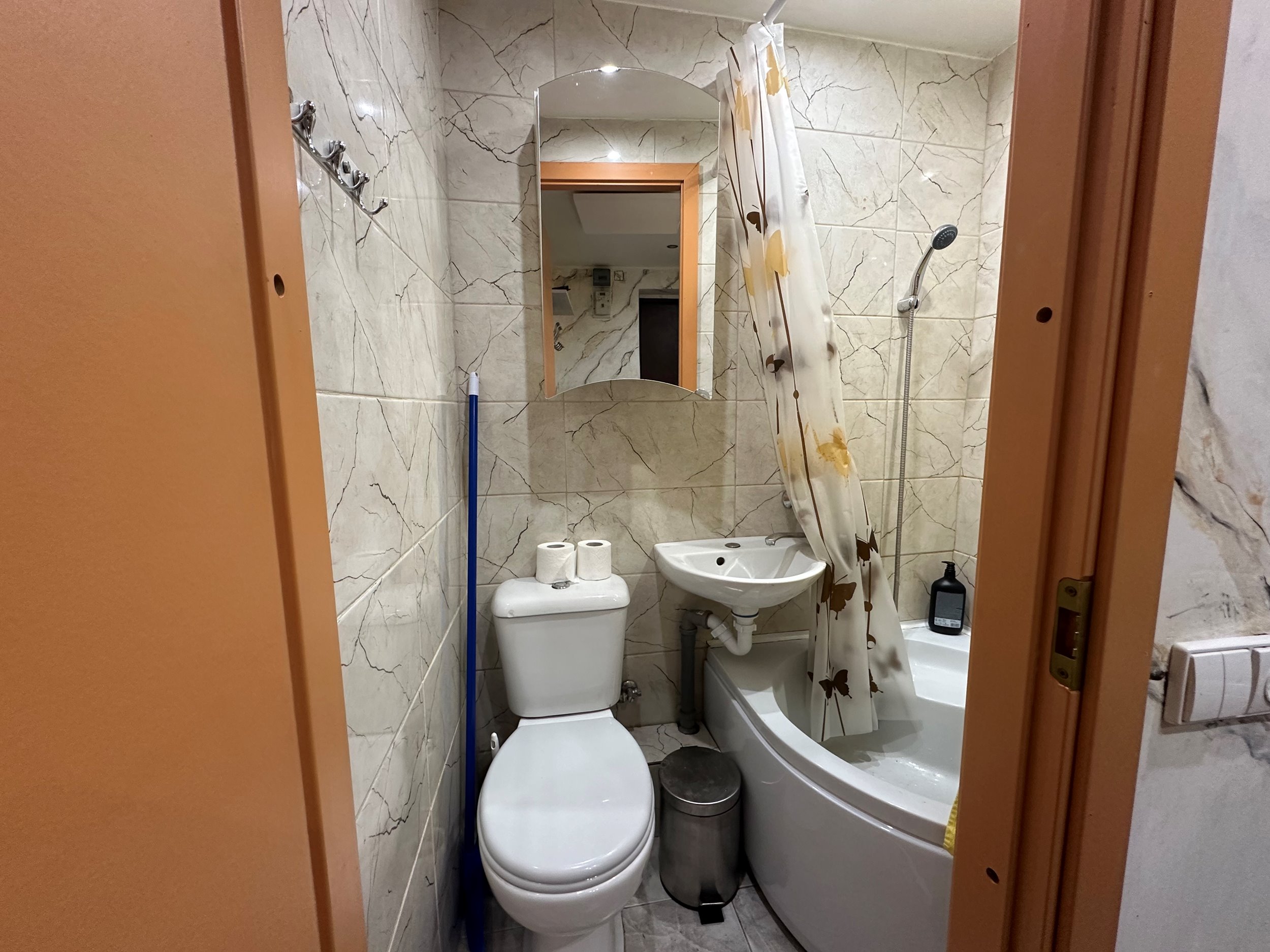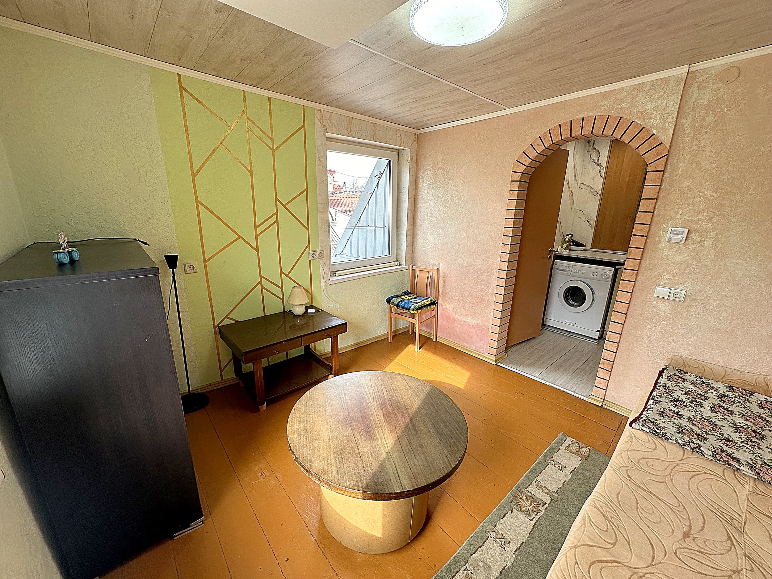 Išplanavimas: kambarys kartu su virtuve, vonios kambarys kartu su WC.