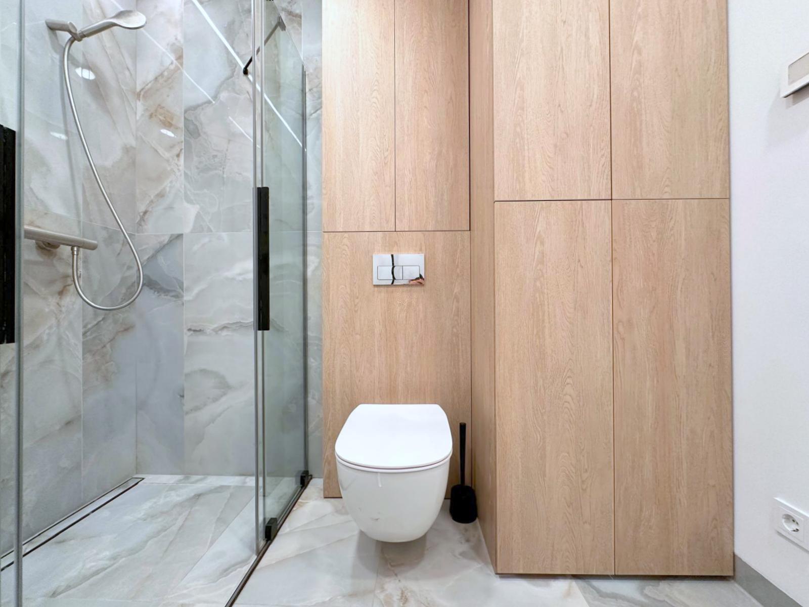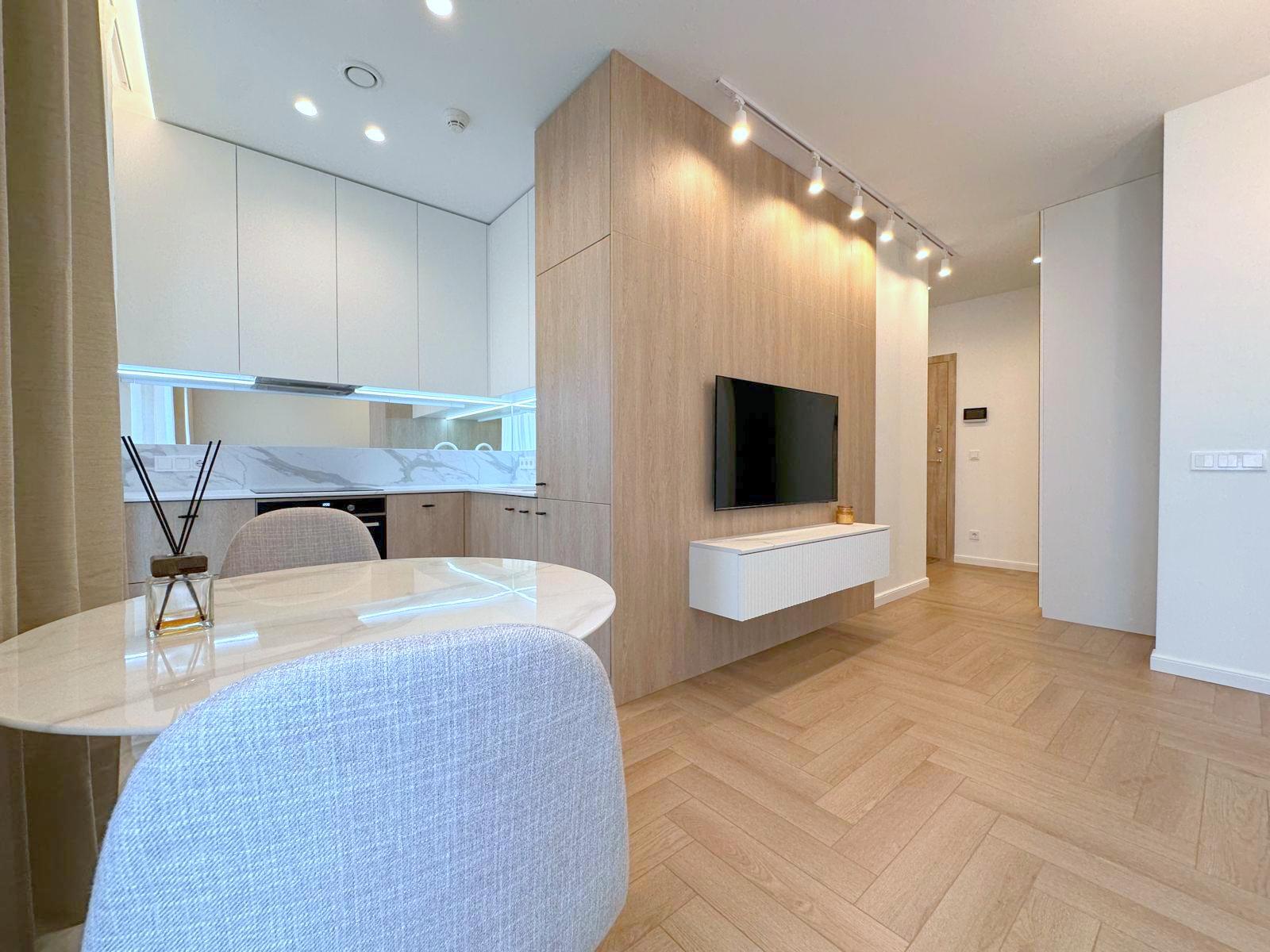 Butas šeimininkų buvo įrengtas sau, todėl nuomininkas jaustųsi čia kaip namuose. Bute rasite viską, ko tik Jums prireiks. Daug foninio - reguliuojamo apšvietimo sprendimų, kurie leis Jums susikurti jaukumą ir individualią nuotaiką kiekvienam vakarui. Šilta, šviesi buto aura bei saulėta pusė nuteiks ramybei ir poilsiui po įtemptos darbo dienos.Dar vienas privalumas - terasa, kurioje vasarą galėsite artsigerti kavos ir paskaityti knygą.