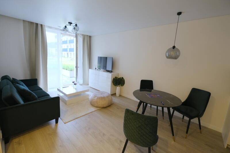 Žaibo g.1 , 1 aukštas iš 4, 46 kv.m., 2022 m. mūrinis, virtuvė kartu su svetaine, vonia ir tualetas kartu, terasa.