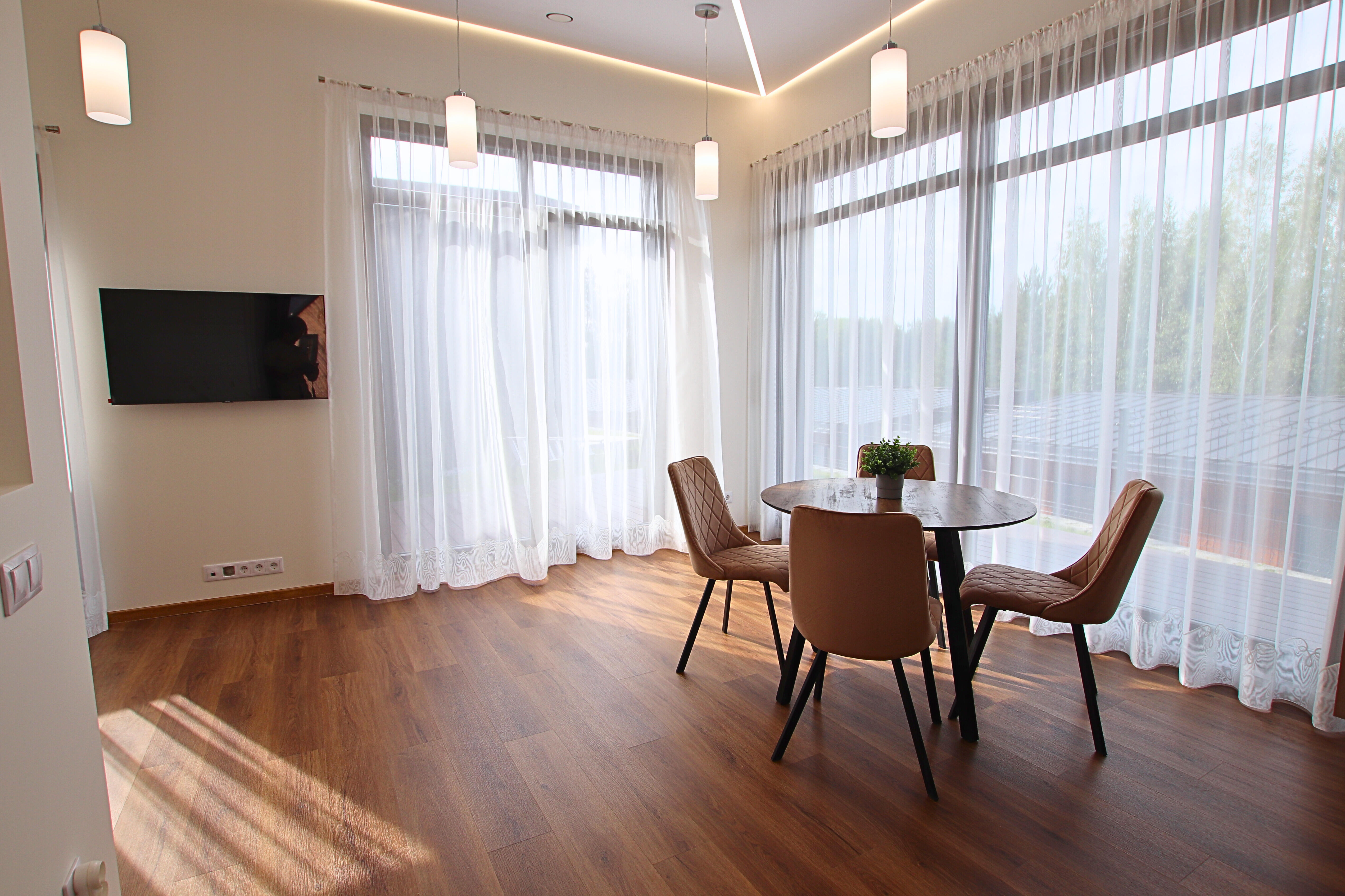 Namas išsiskiria elegantišku ir šviesiu interjeru, kuris suteikia jaukumo ir modernumo derinį. Be to, terasa tikrai tampa puiki vieta leisti laiką lauke, atsipalaiduoti ir mėgautis gamtos grožiu!