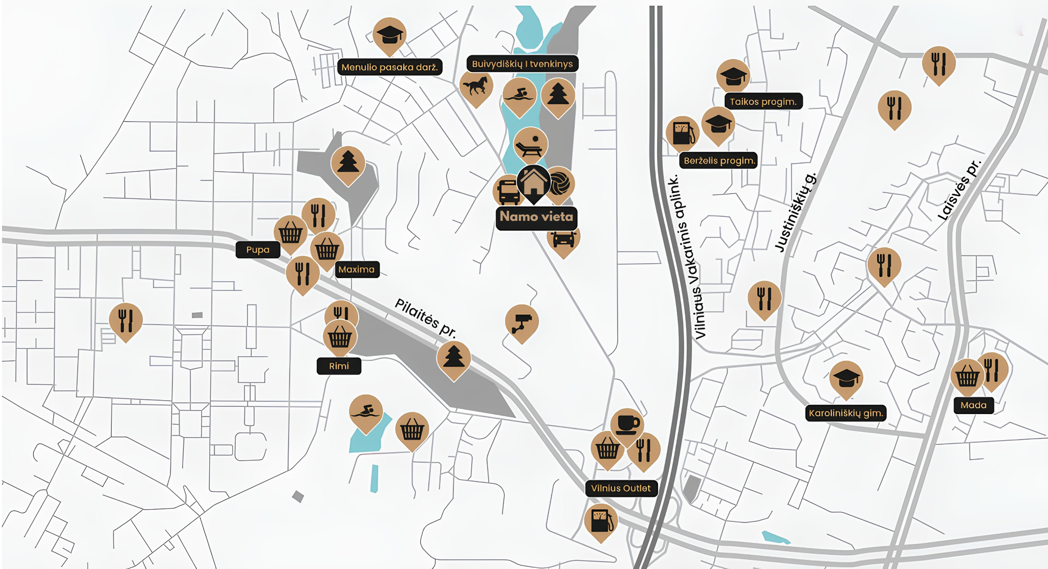 - Gerai išvystyta infrastruktūra, šalia parduotuvė ,,Vilnius Outlet " ir ,,Senukai".