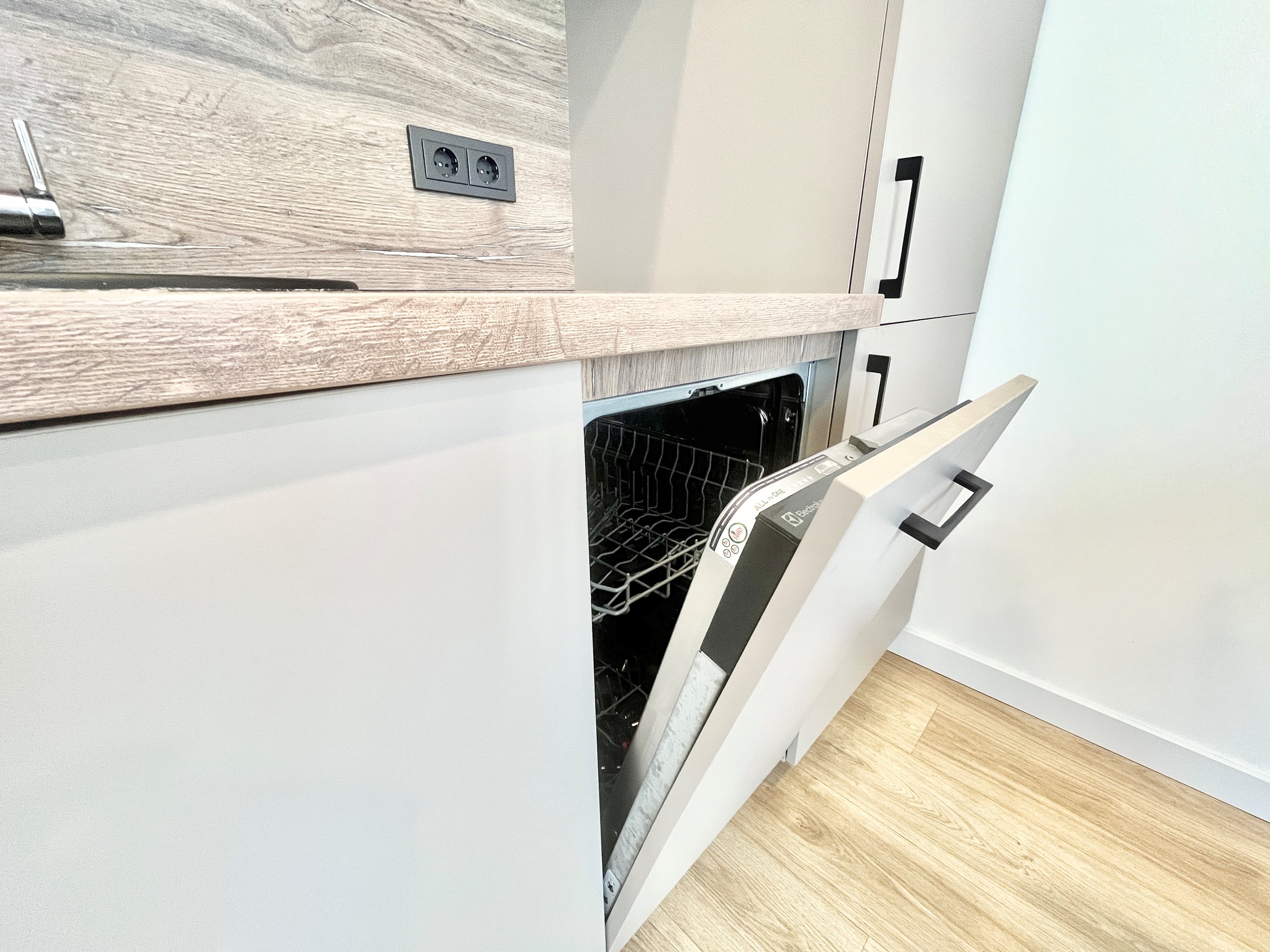 - naujas, modernus įrengimas su visais baldais ir buitine technika