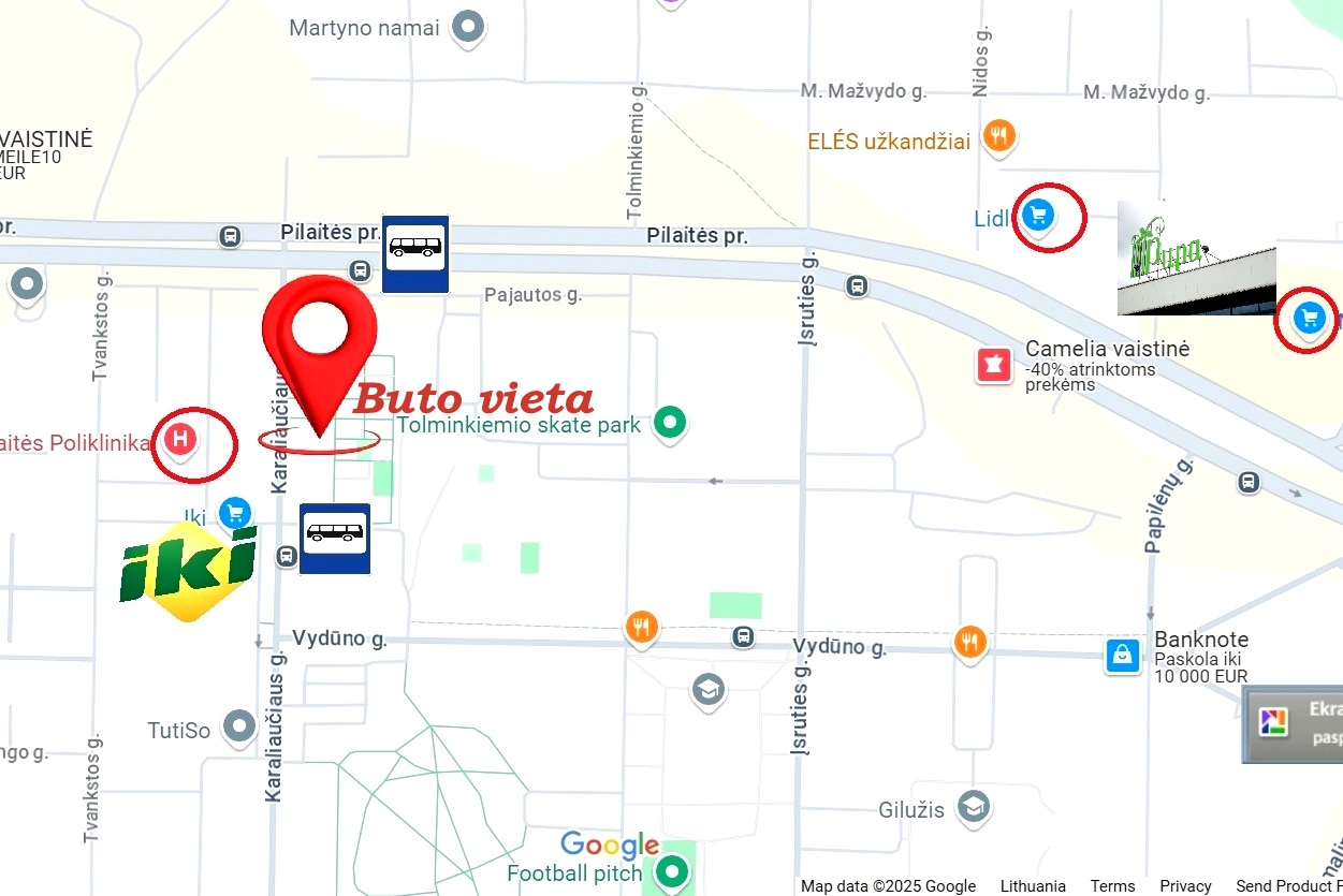 - Šalia viešojo transporto stotelės, parduotuvės, mokyklos, vaikų darželiai.