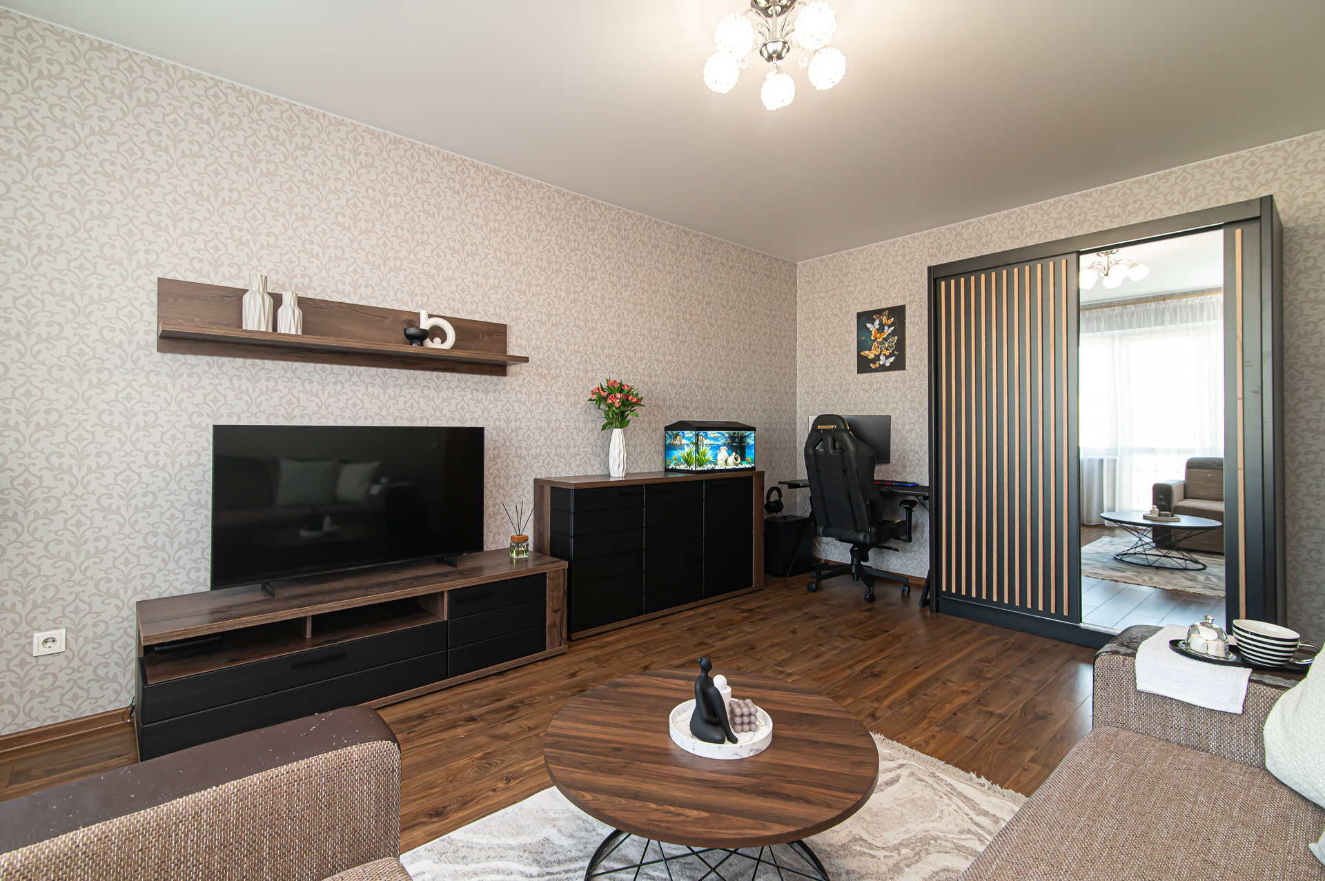- Erdvus ir jaukus – didelis, šiltas butas su vakarine orientacija, leidžiančia mėgautis saulės šviesa popietėmis ir vakarais.