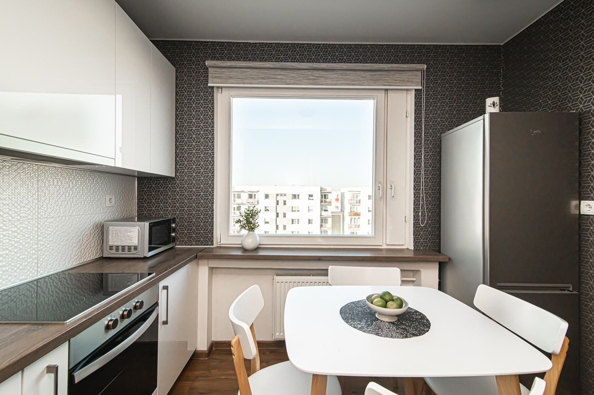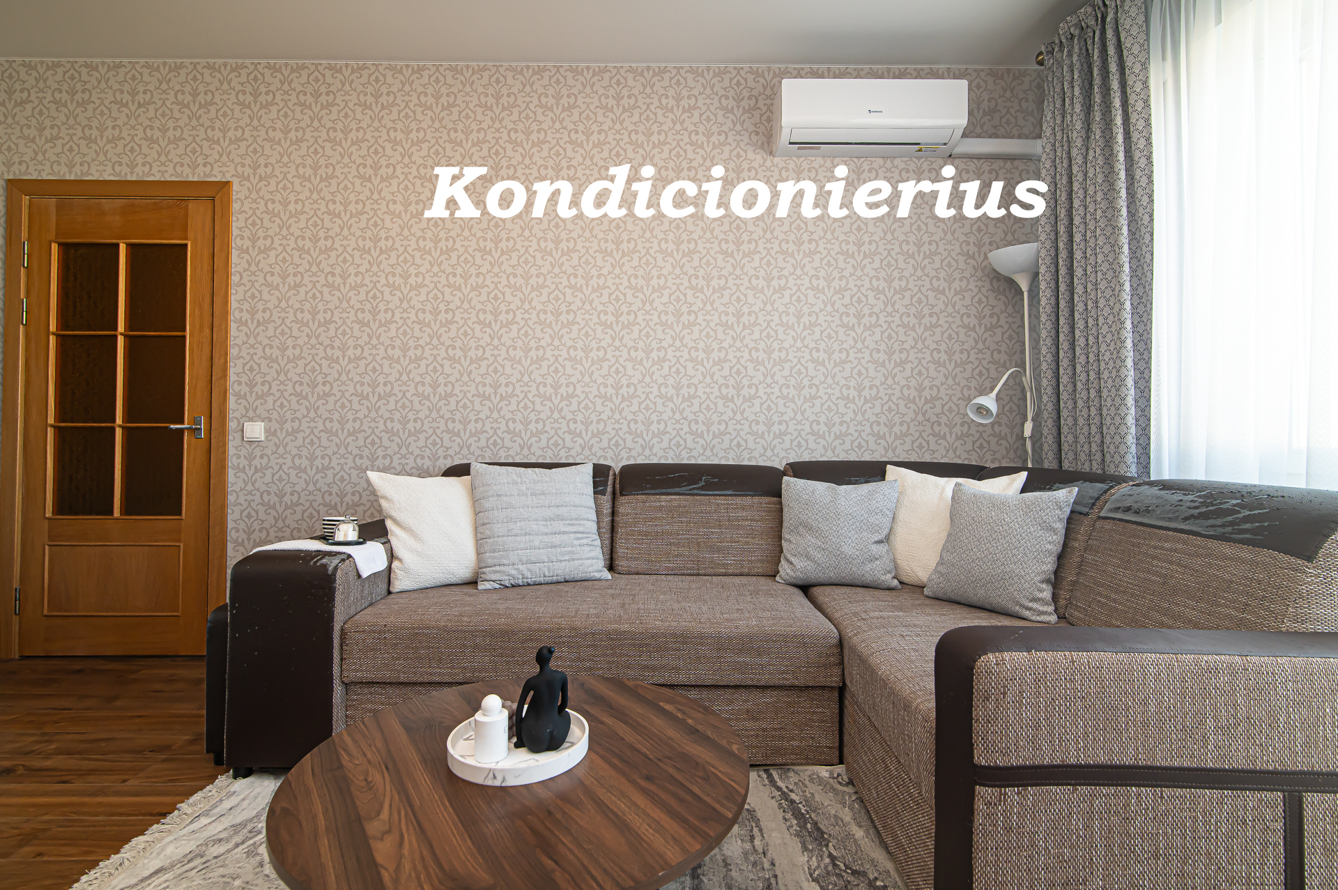 - Pilnai įrengtas – parduodamas su visais baldais ir buitine technika (šaldytuvas, kaitlentė, orkaitė, gartraukis, skalbimo mašina, kondicionierius).