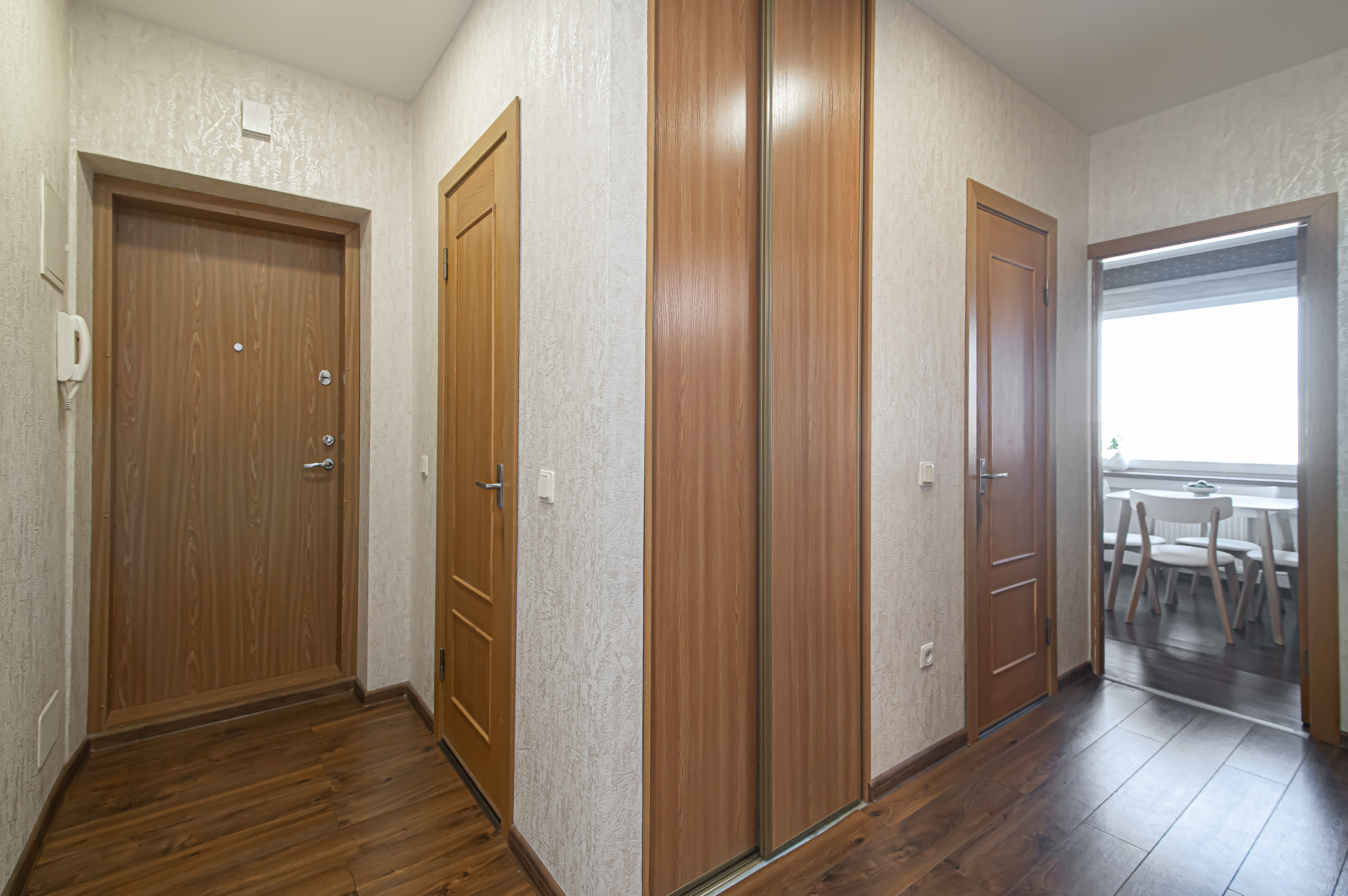 - Prieškambaris su talpiomis sieninėmis spintomis.