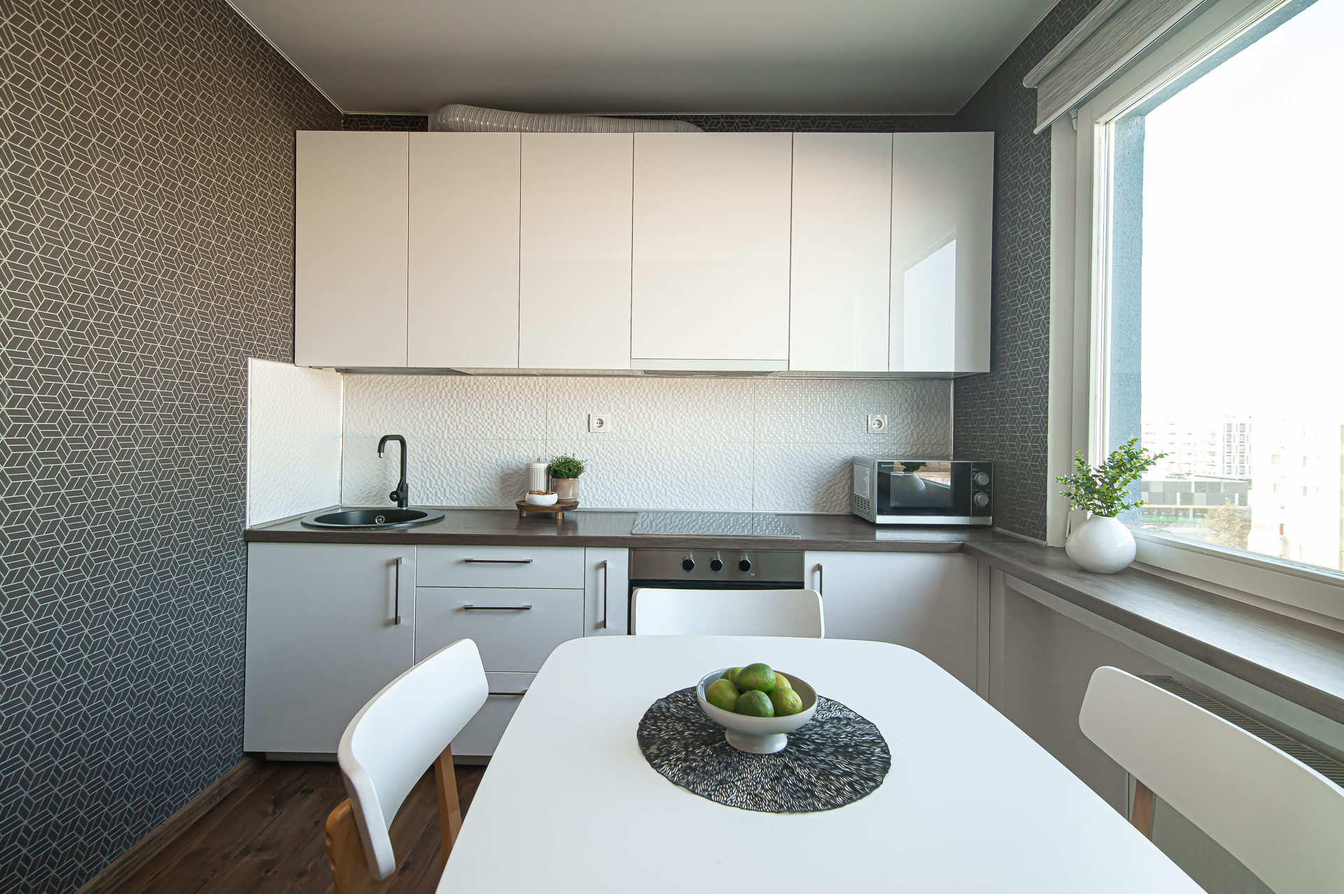 - Virtuvė su integruota buitine technika – 8,22 kv.m.