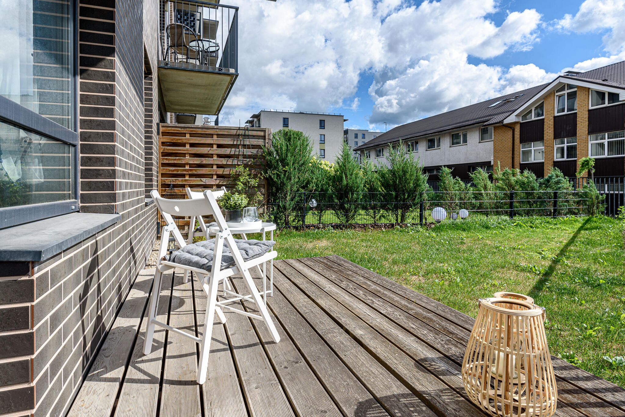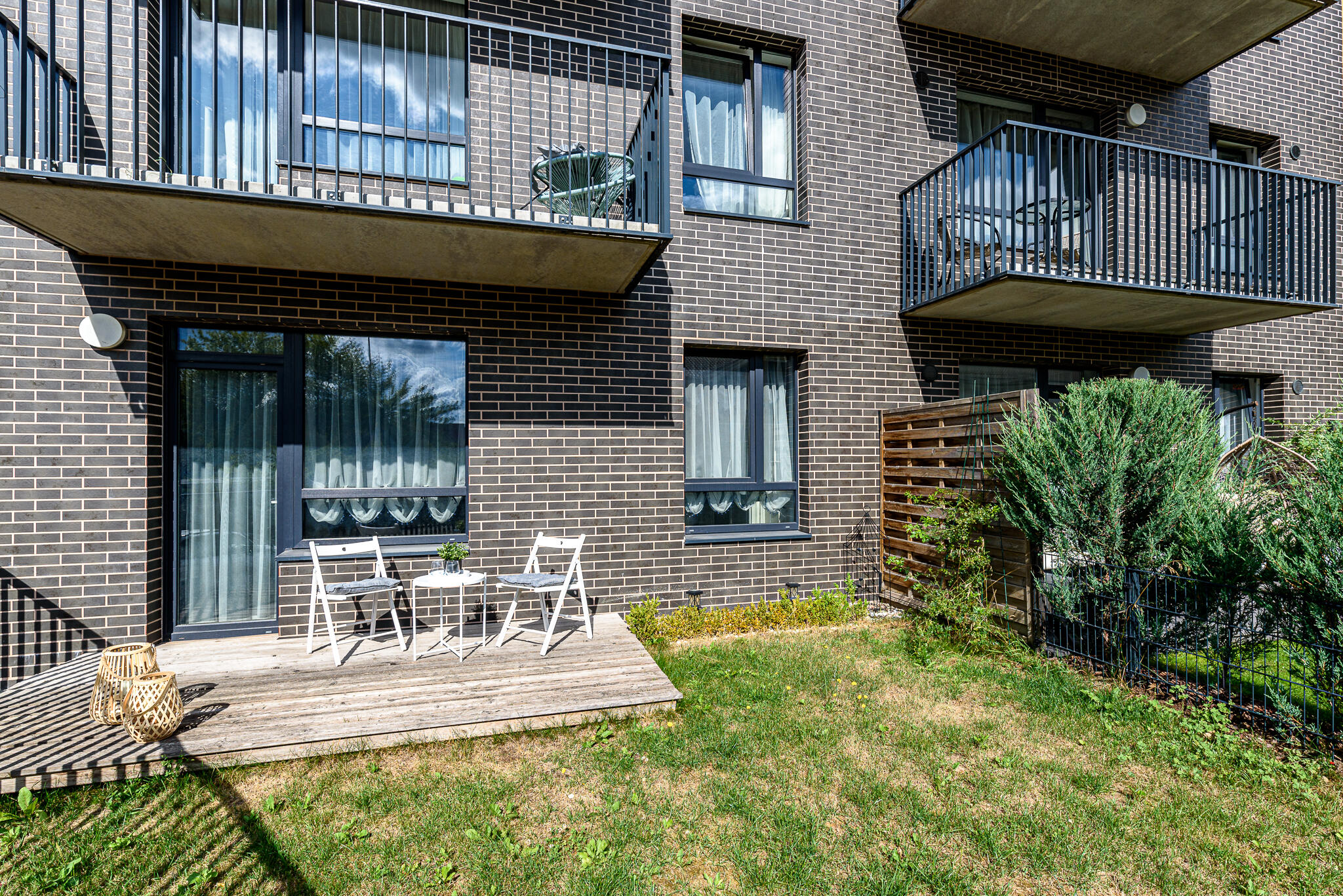 Privatus kiemelis, žalia žolė po kojom su rytinė kava/arbata, dizainerio įrengtas nuostabus butas puikioje lokacijoje laukia Jūsų.
