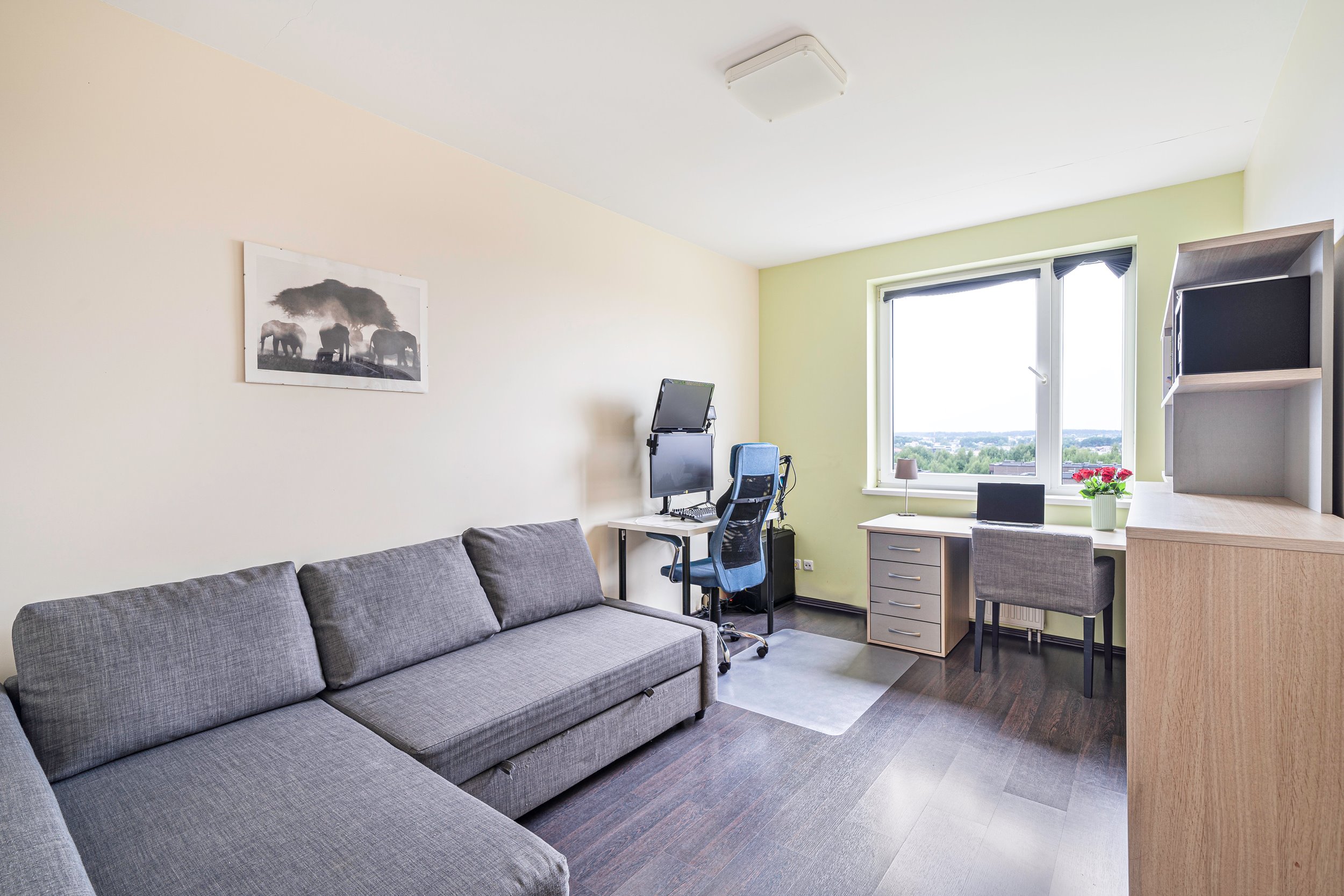 • Puikus išplanavimas: svetainės zona, du izoliuoti kambariai;