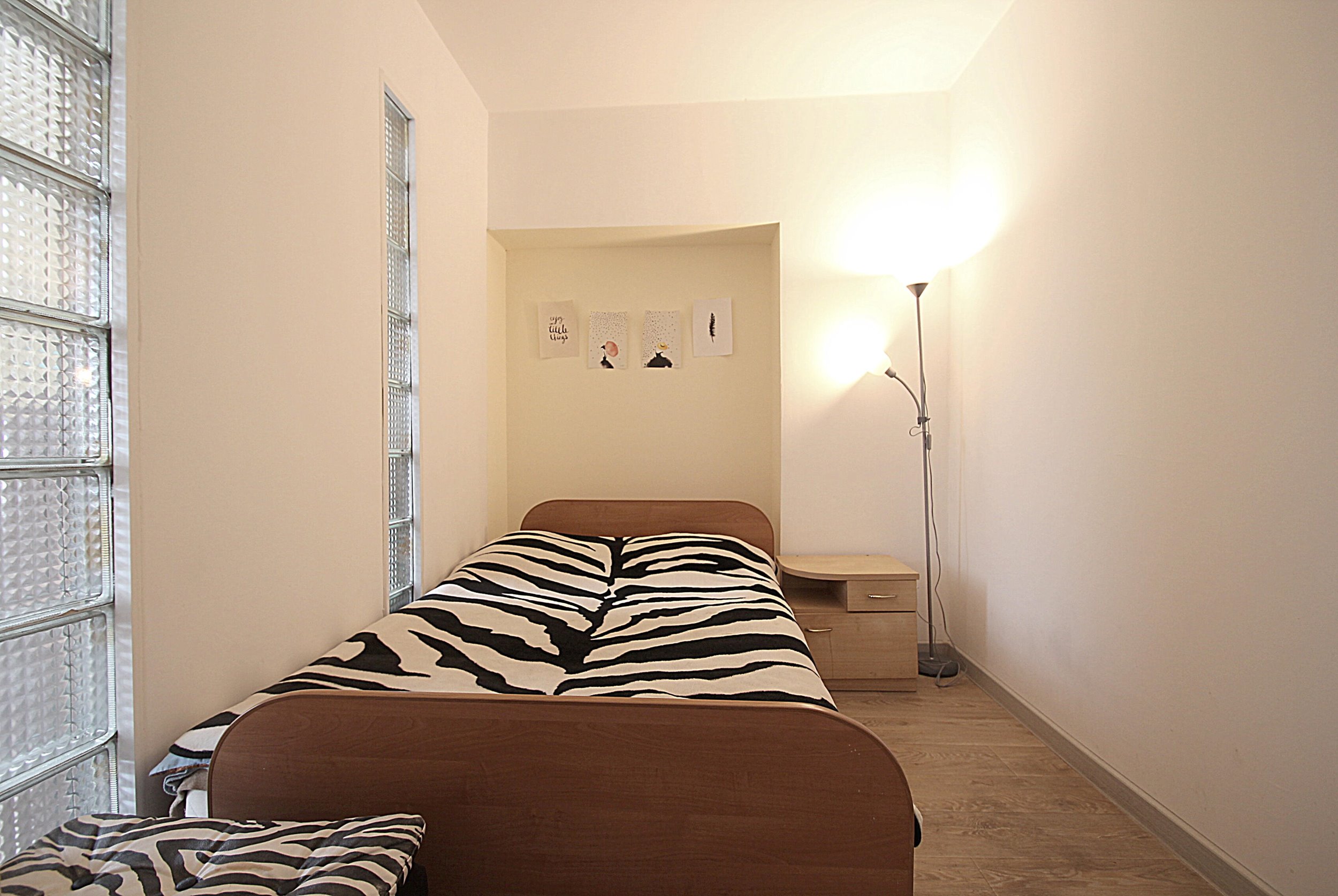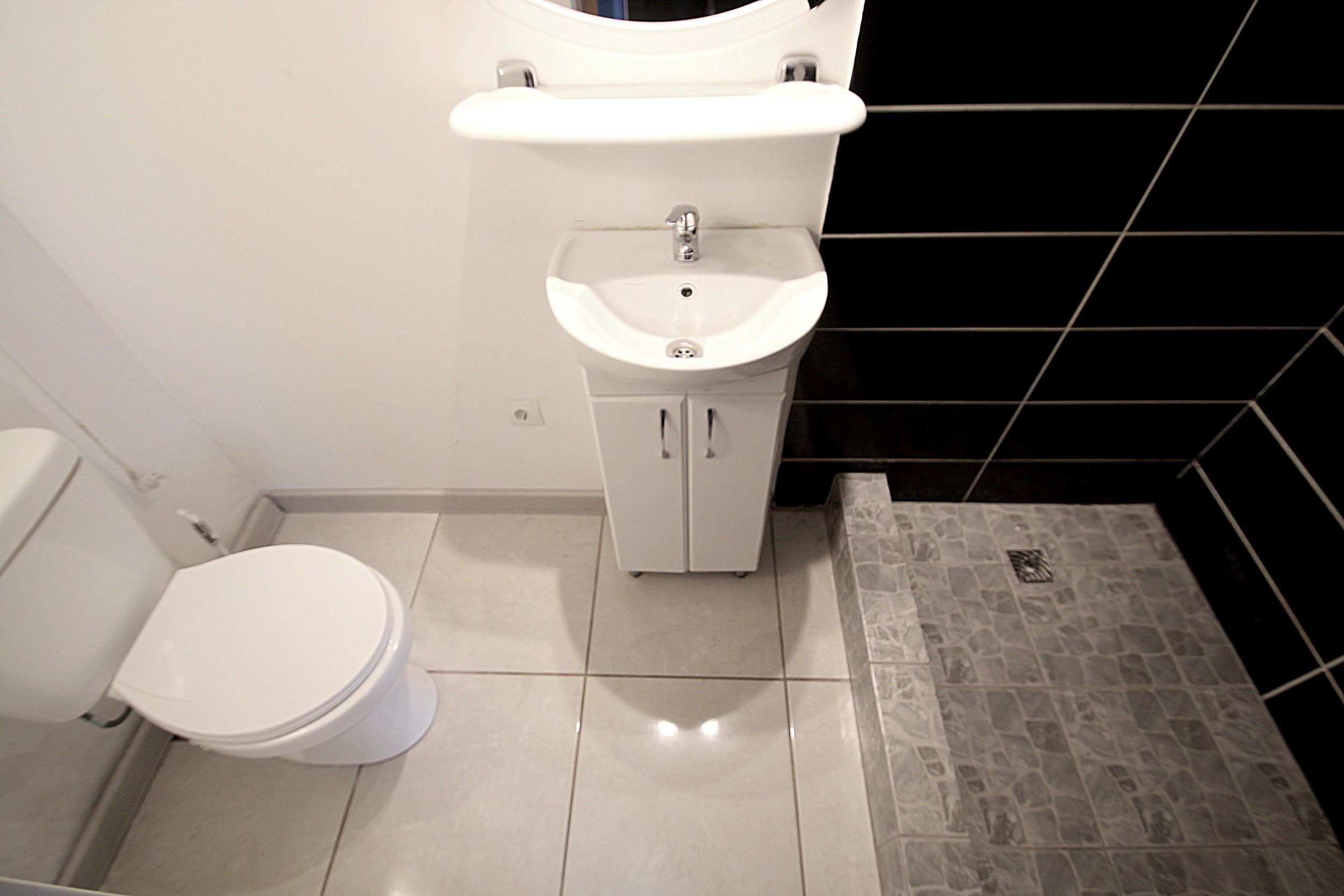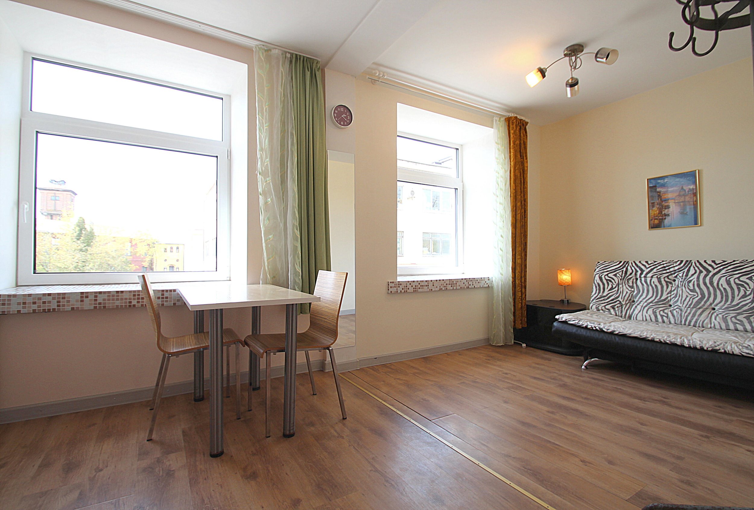 Buto išplanavimas: kambarys kartu su virtuve, atskira miegama zona, dušas kartu su WC.