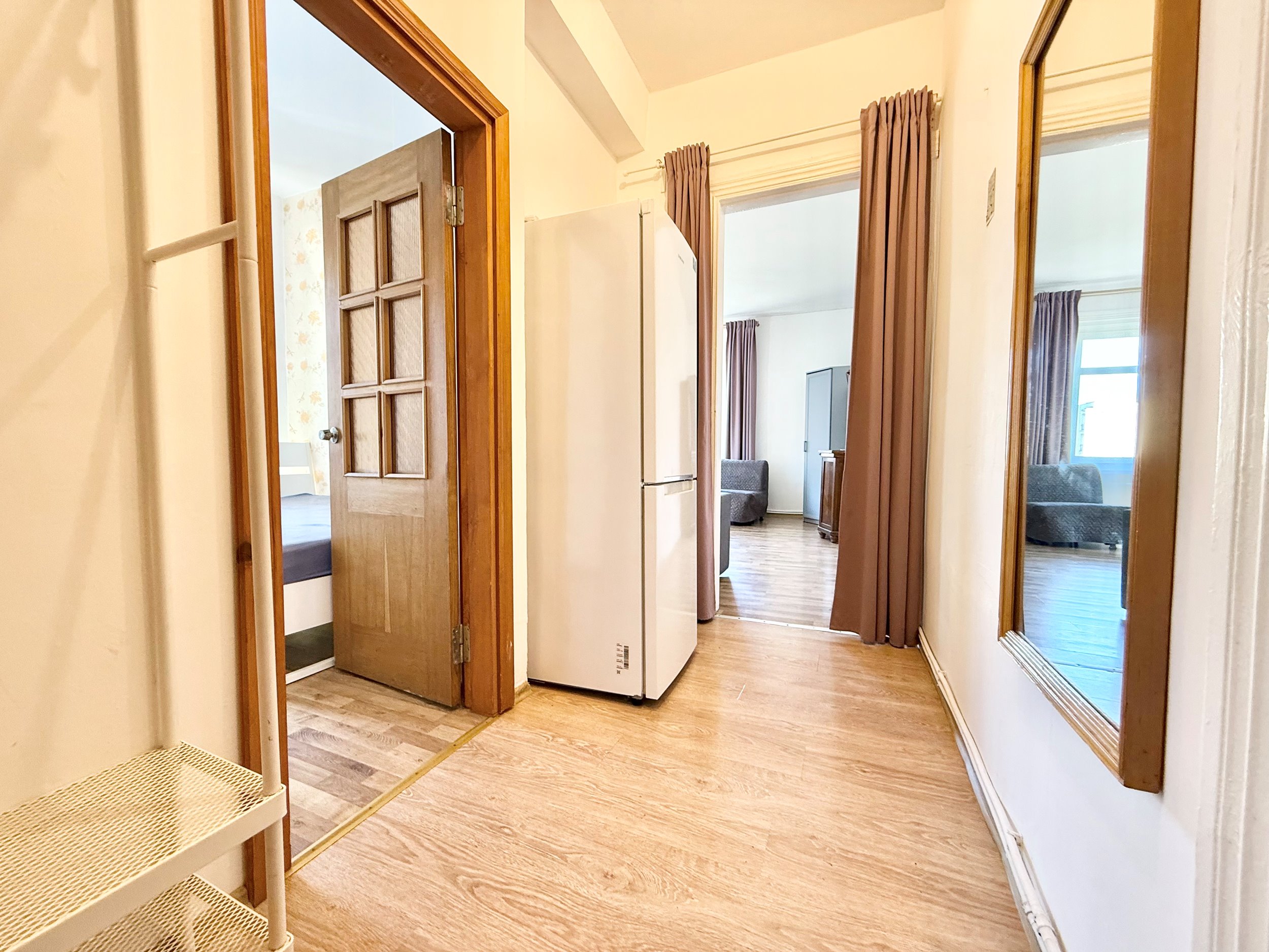Bute yra visi reikalingiausi baldai, sofa-lova, skalbimo mašina, šaldytuvas su šaldikliu, viryklė ir t.t.