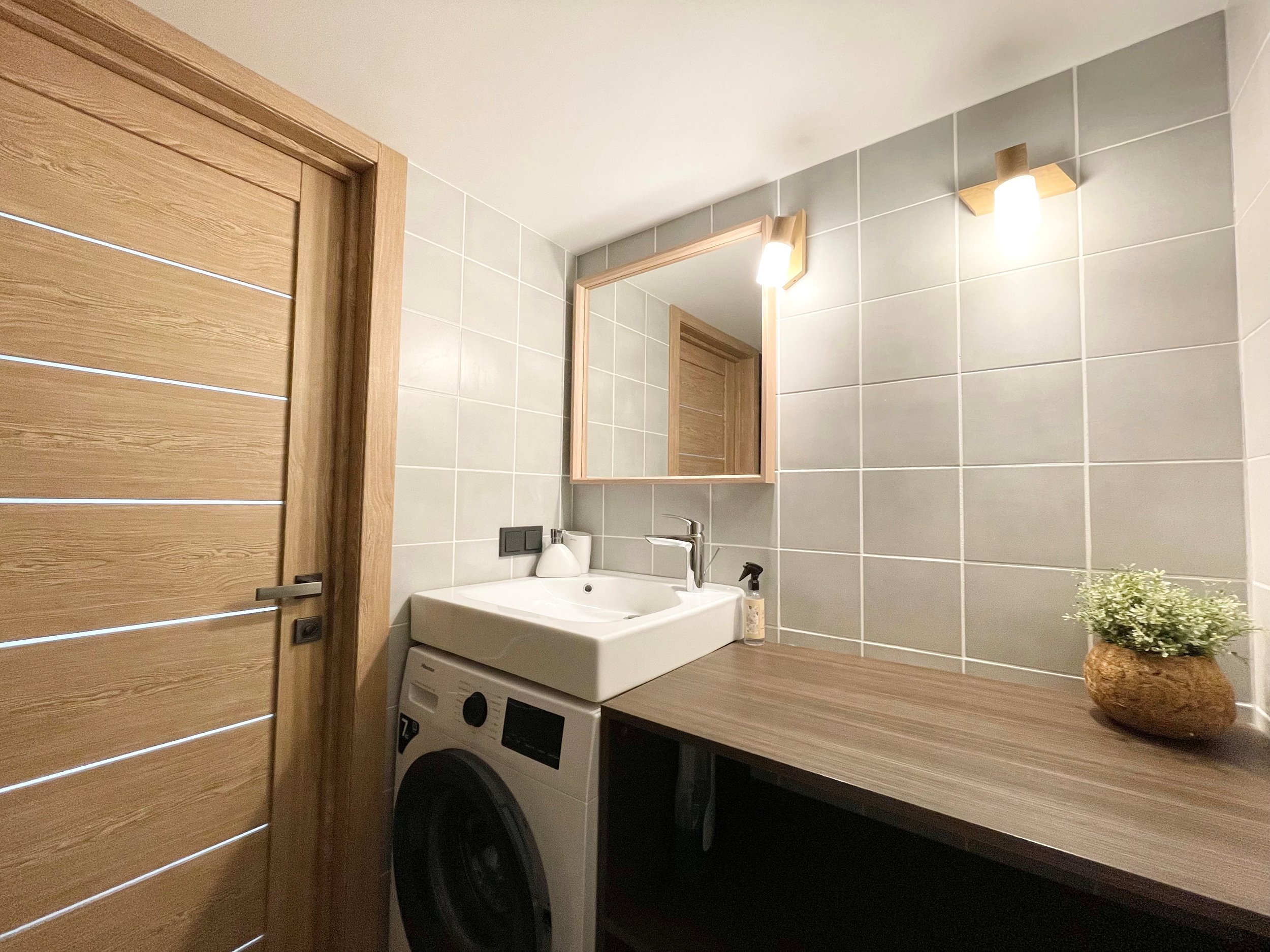 Bute yra visi reikalingiausi baldai, sofa-lova, skalbimo mašina, šaldytuvas, viryklė ir t.t.