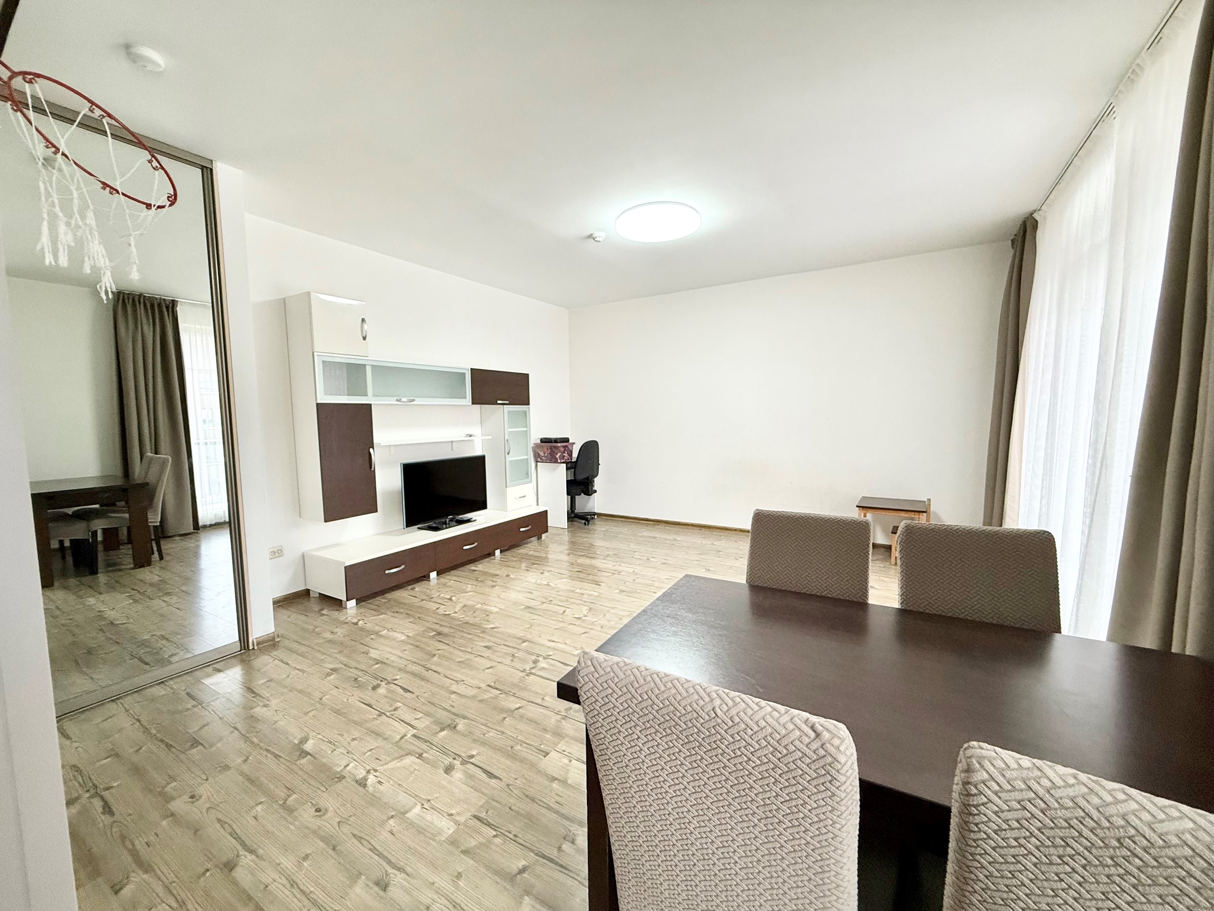 Yra galimybė svetainėje pastatyti papildomą sofą ar kitą baldą.