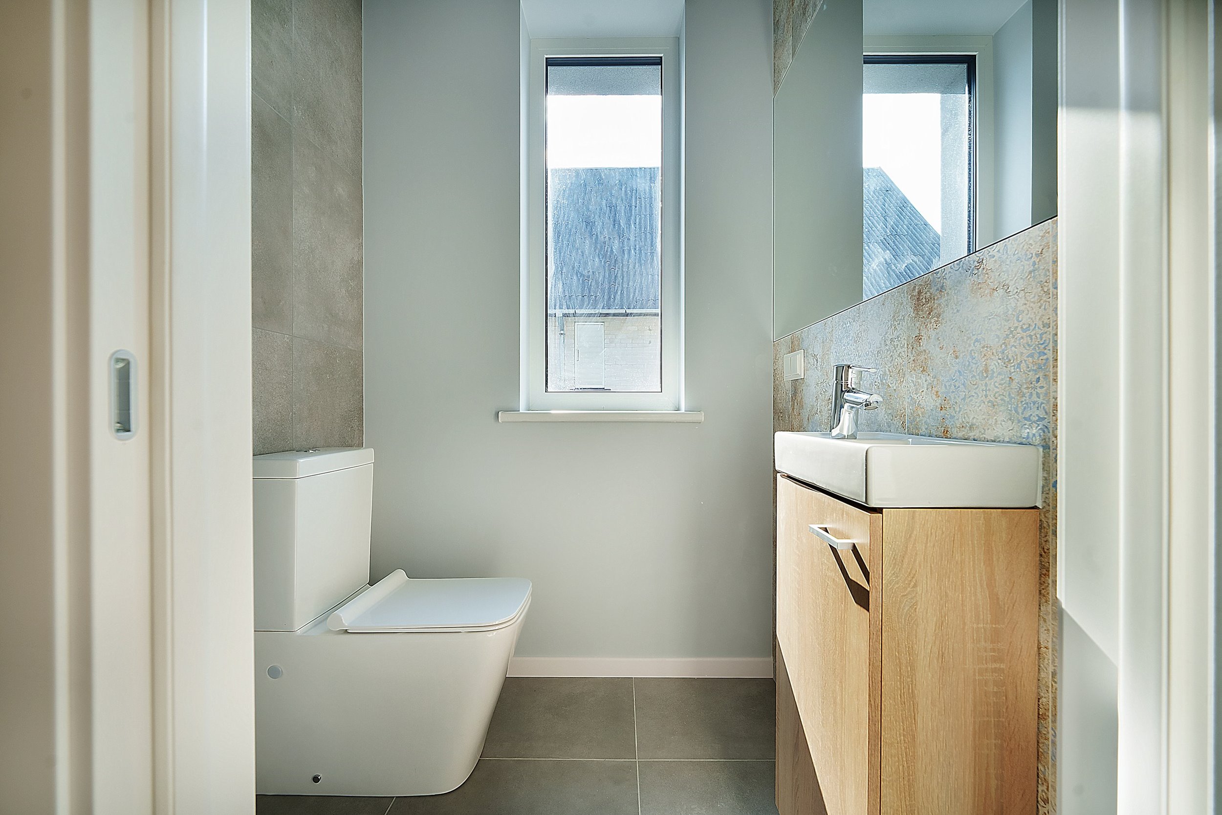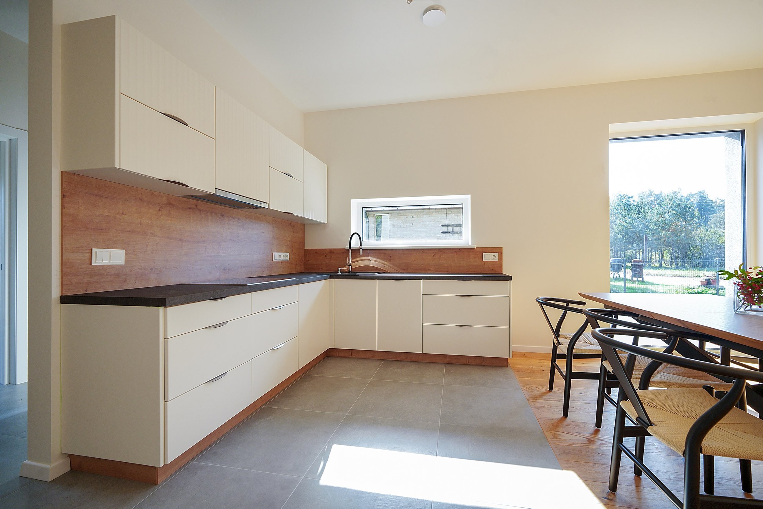 -1 aukštas: erdvi virtuvė/svetainė, vonios kambarys, tamsusis kambariukas, skalbimo kambarys.
