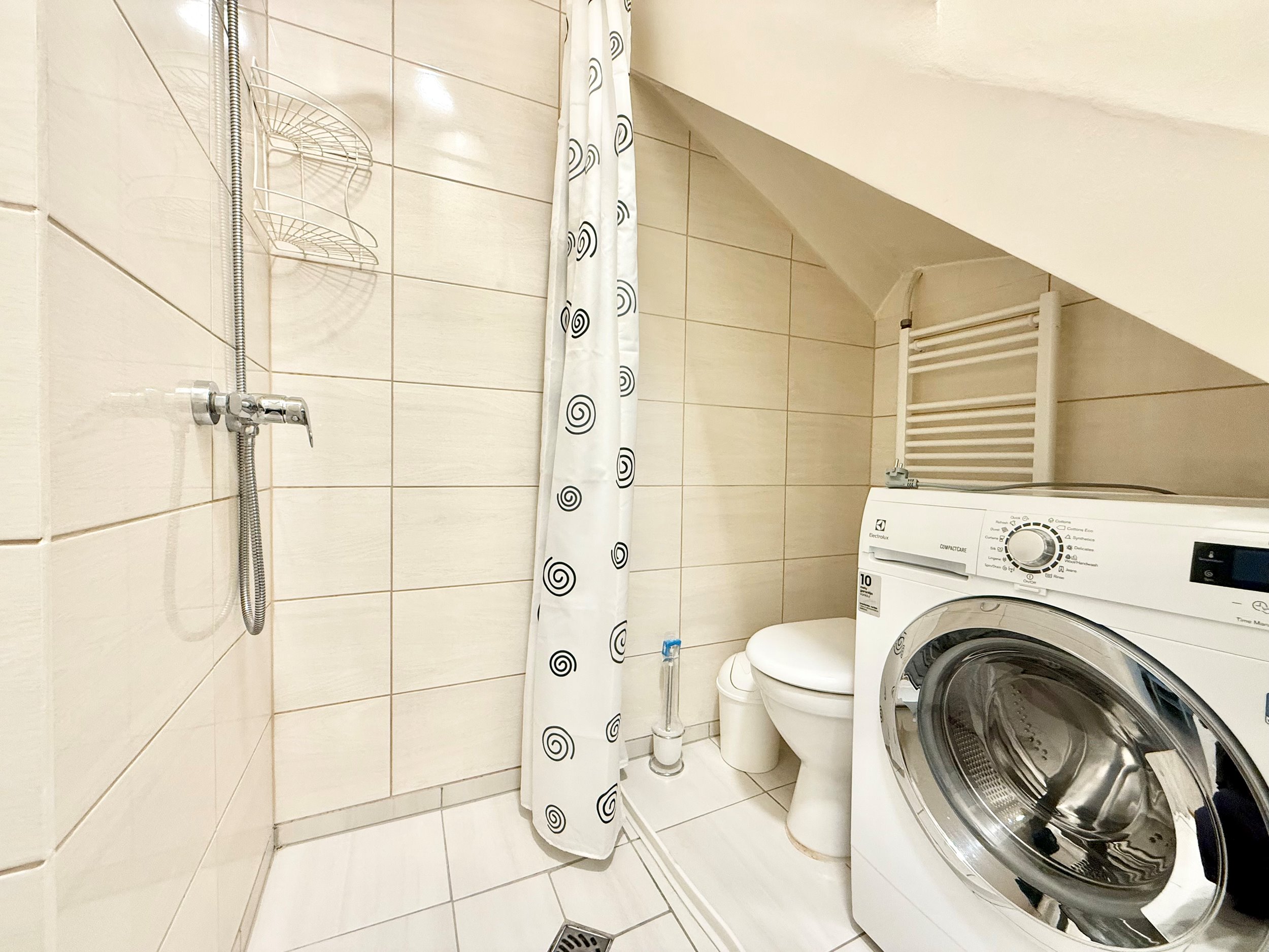 Išplanavimas: svetainė/miegamasis, virtuvė, tualetas ir dušas kartu, uždaras kiemas.