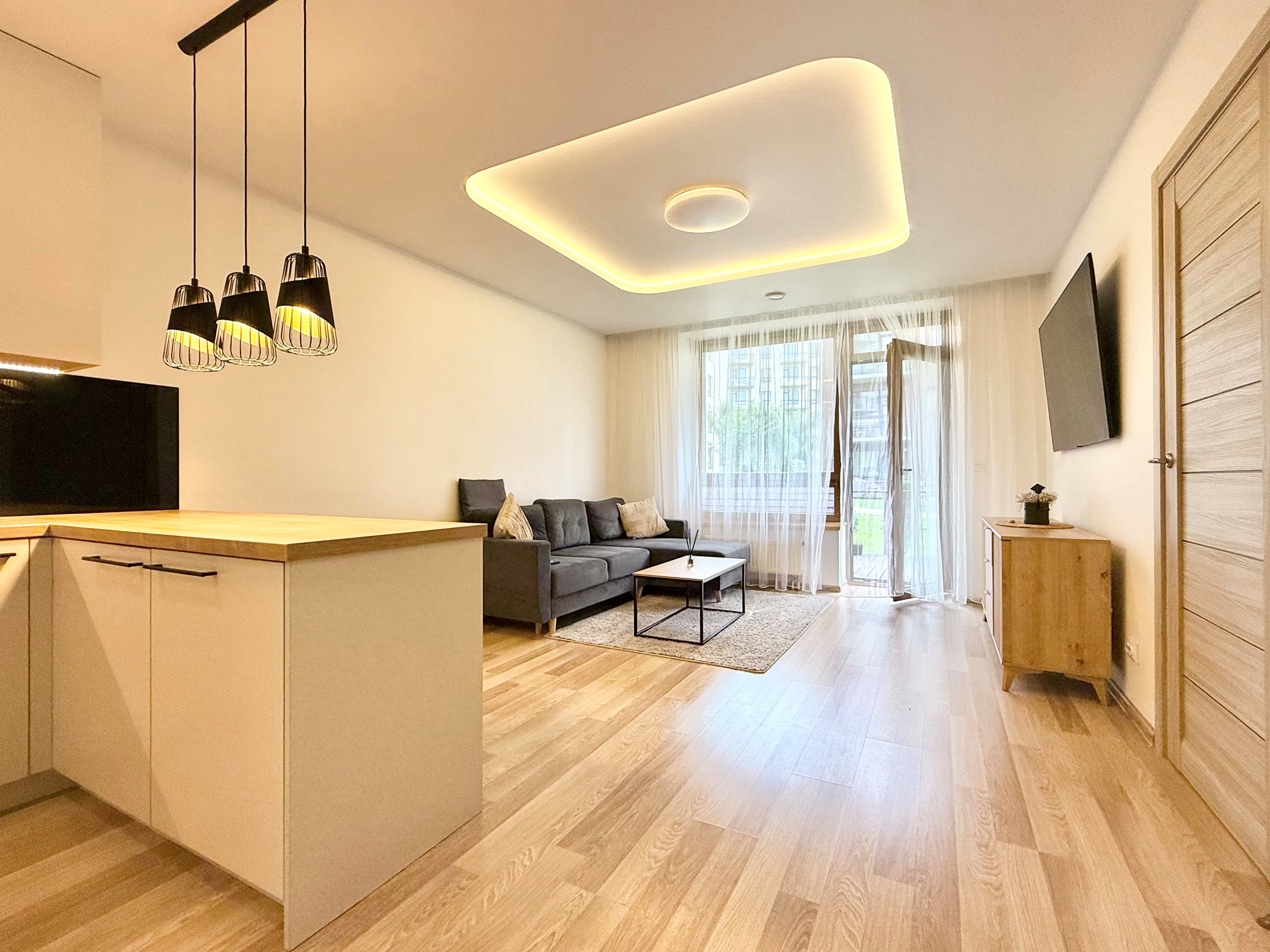 Išplanavimas: virtuvė/svetainė, miegamasis, vonios kambarys su vonia, terasa.