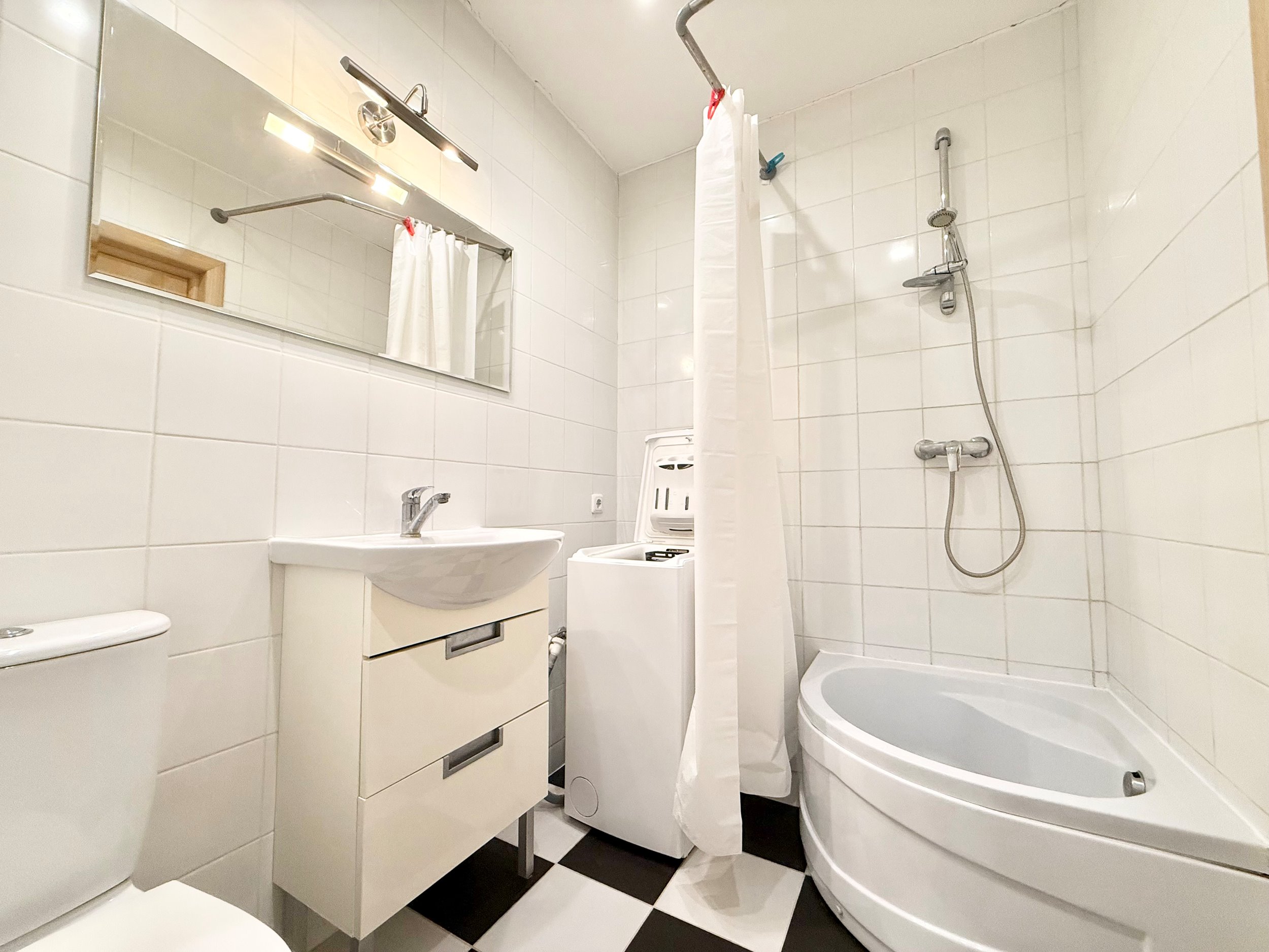 Bute yra visi reikalingiausi baldai, sofa-lova, erdvi spinta, skalbimo mašina, šaldytuvas su šaldikliu,viryklė ir t.t.