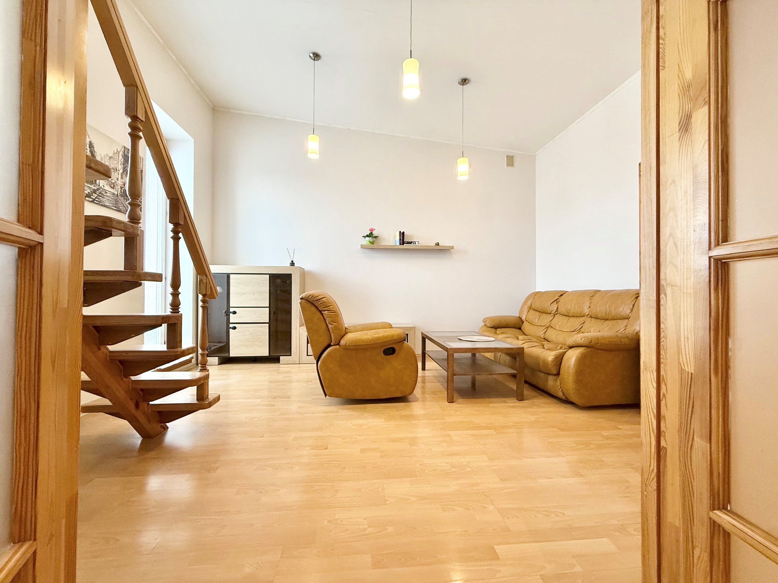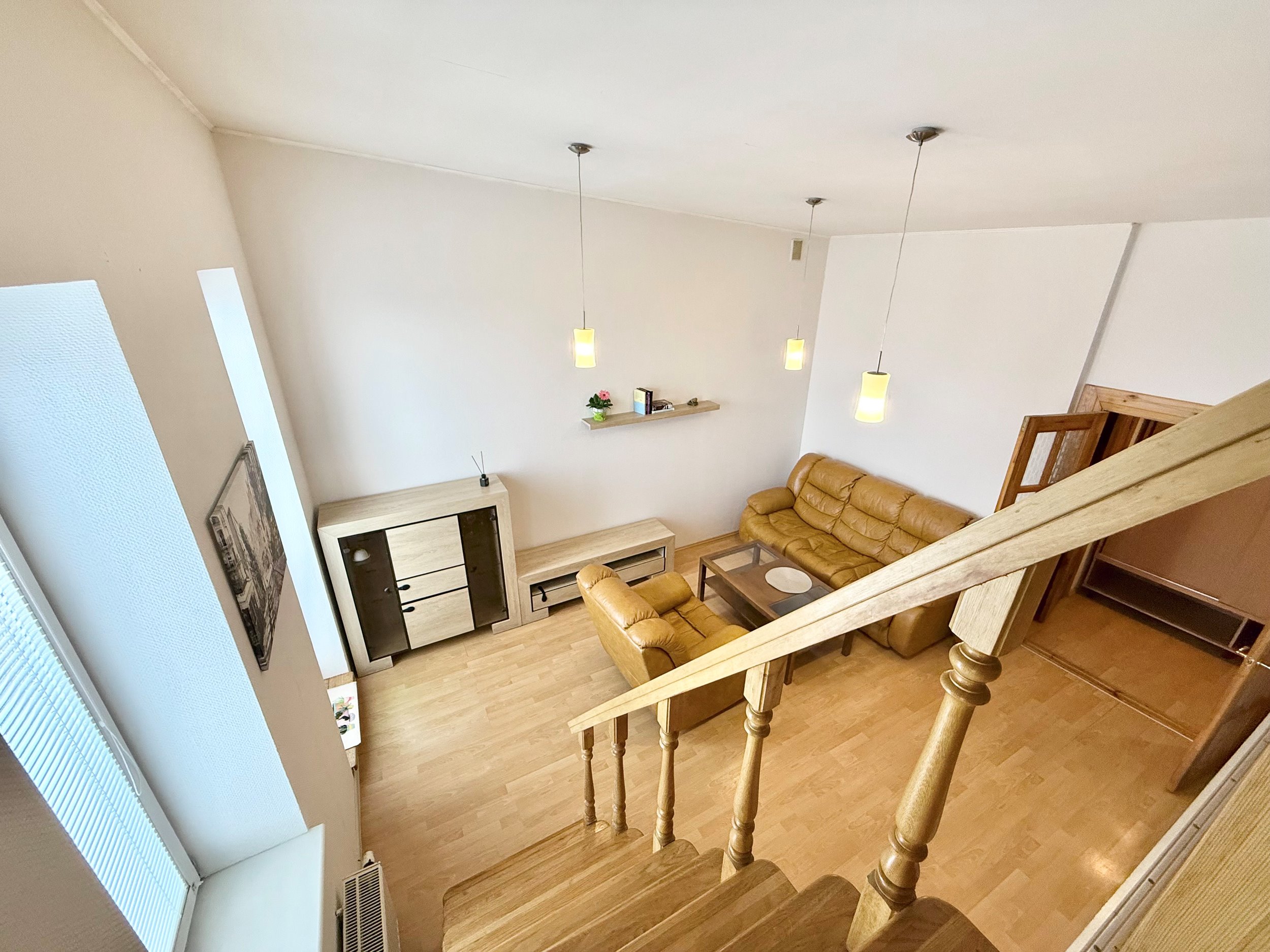 Geroje, ramioje vietoje, Justiniškėse, išnuomojamas įrengtas 52 kv.m. ploto, 2 kambarių jaukus, šviesus butas per 2 aukštus.