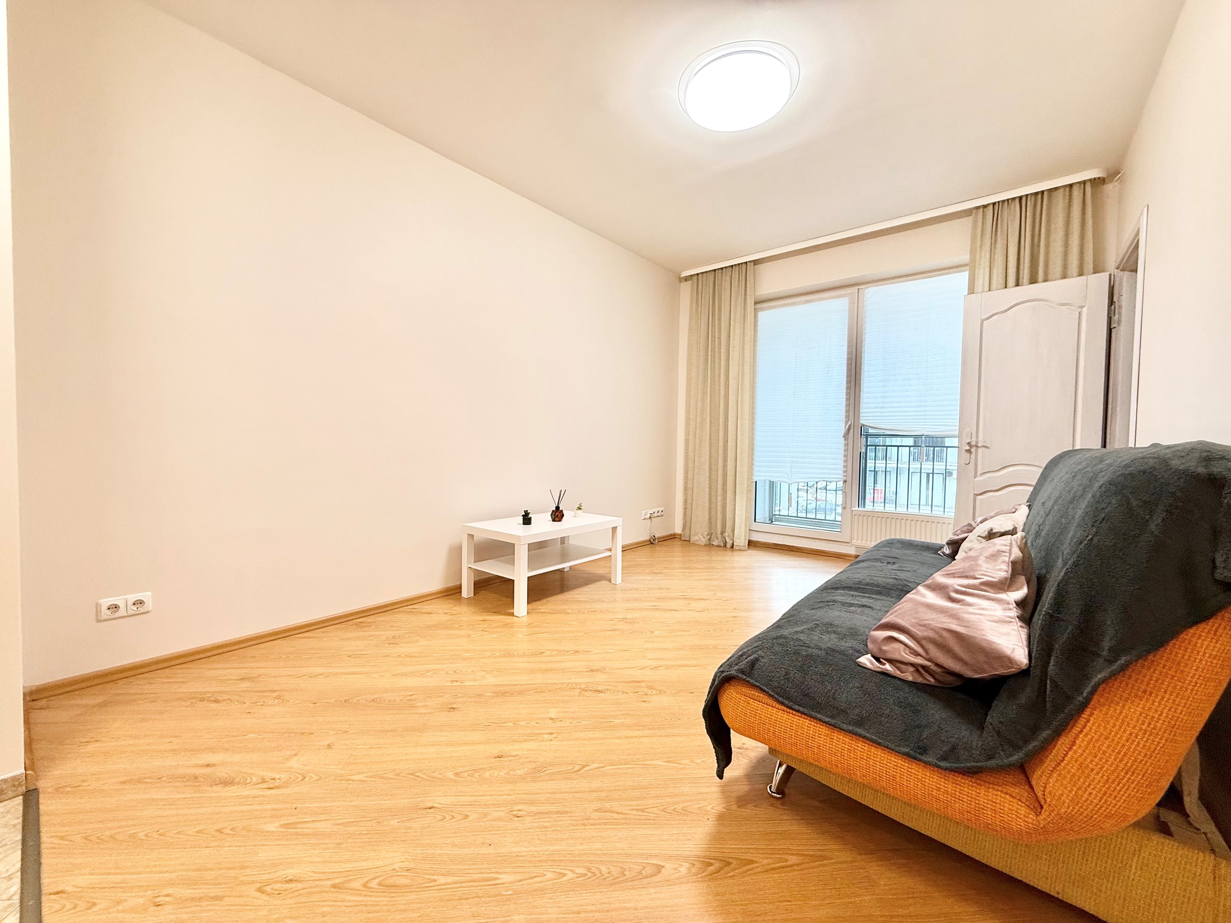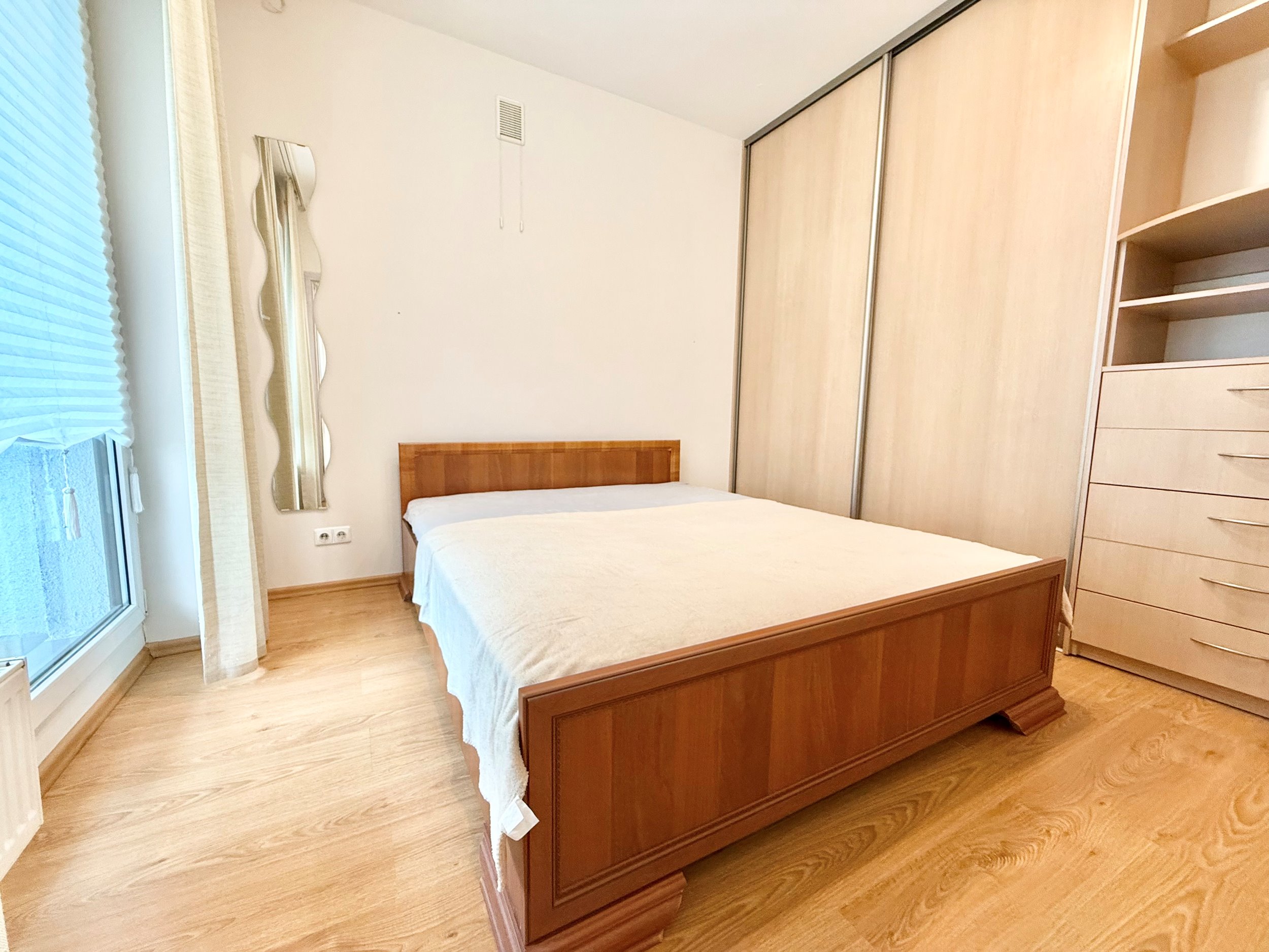 Išplanavimas: svetainė/virtuvė, miegamasis, vonios kambarys ir vonia atskirai, balkonas.