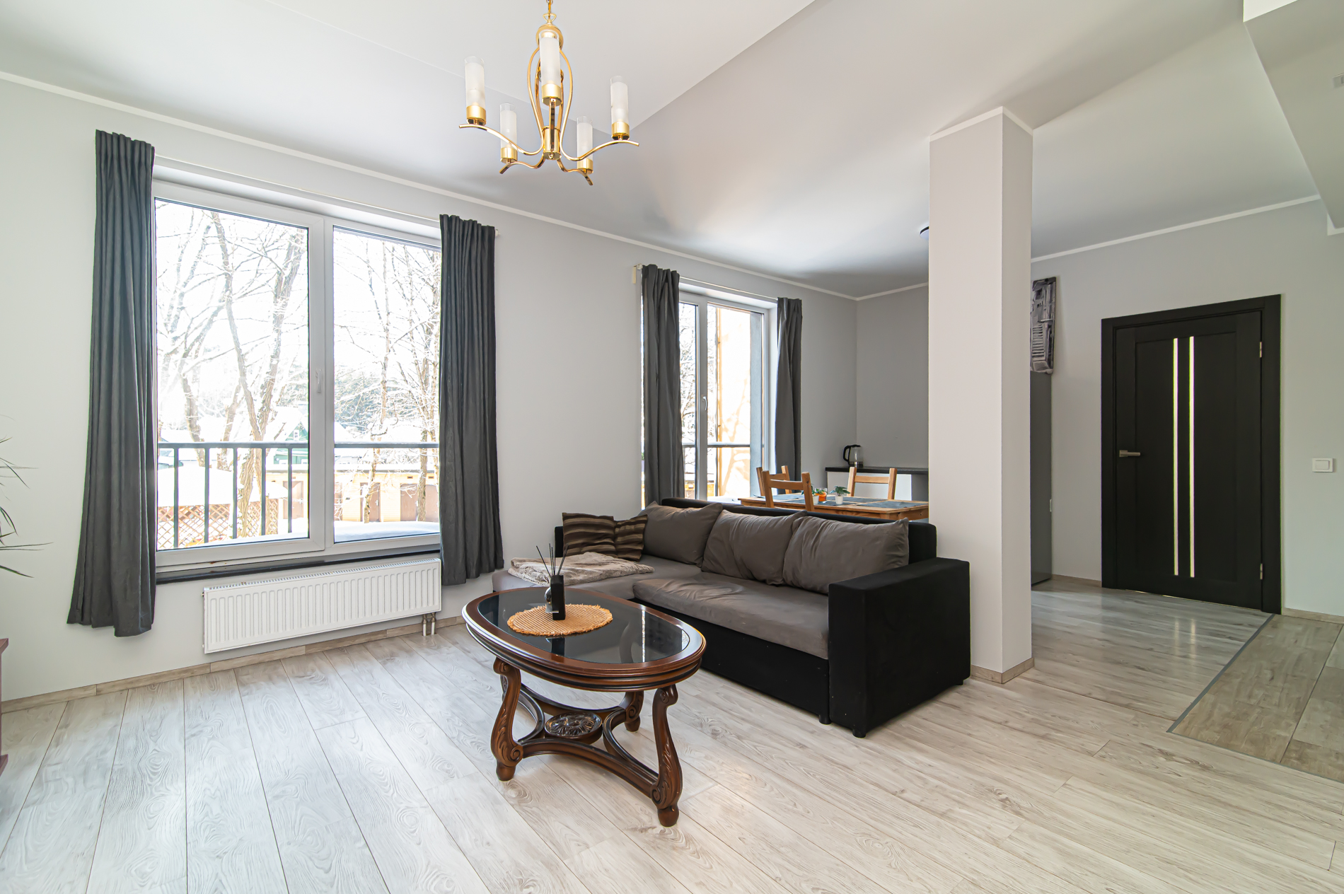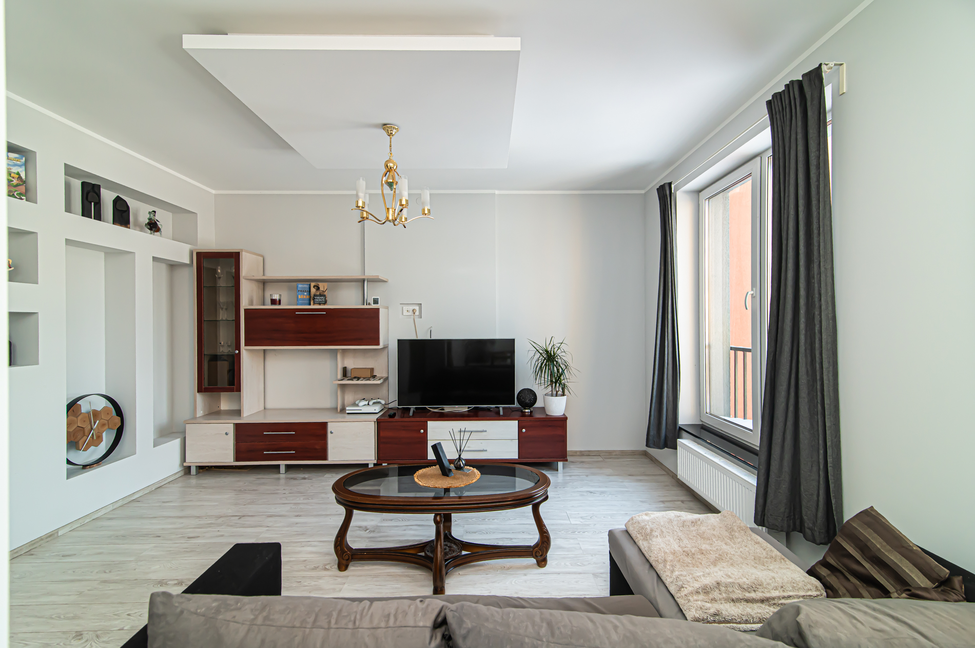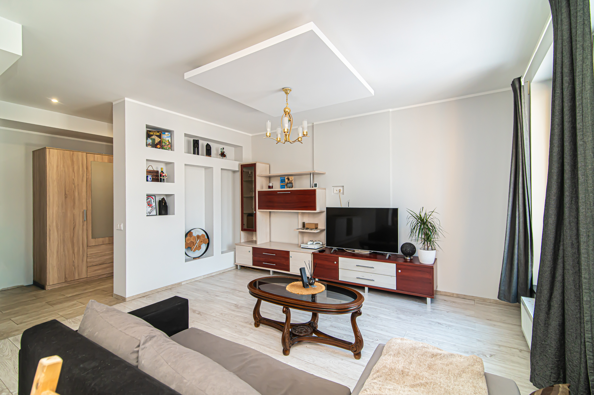 58,45 kv. m išmintingai suplanuotos erdvės – šviesi svetainė kartu su virtuve, kurioje kava rytais kvepia šiek tiek stipriau nei kitur, ir tylus atskiras miegamasis, kur už lango girdisi ne miesto triukšmas, o paukščiai.