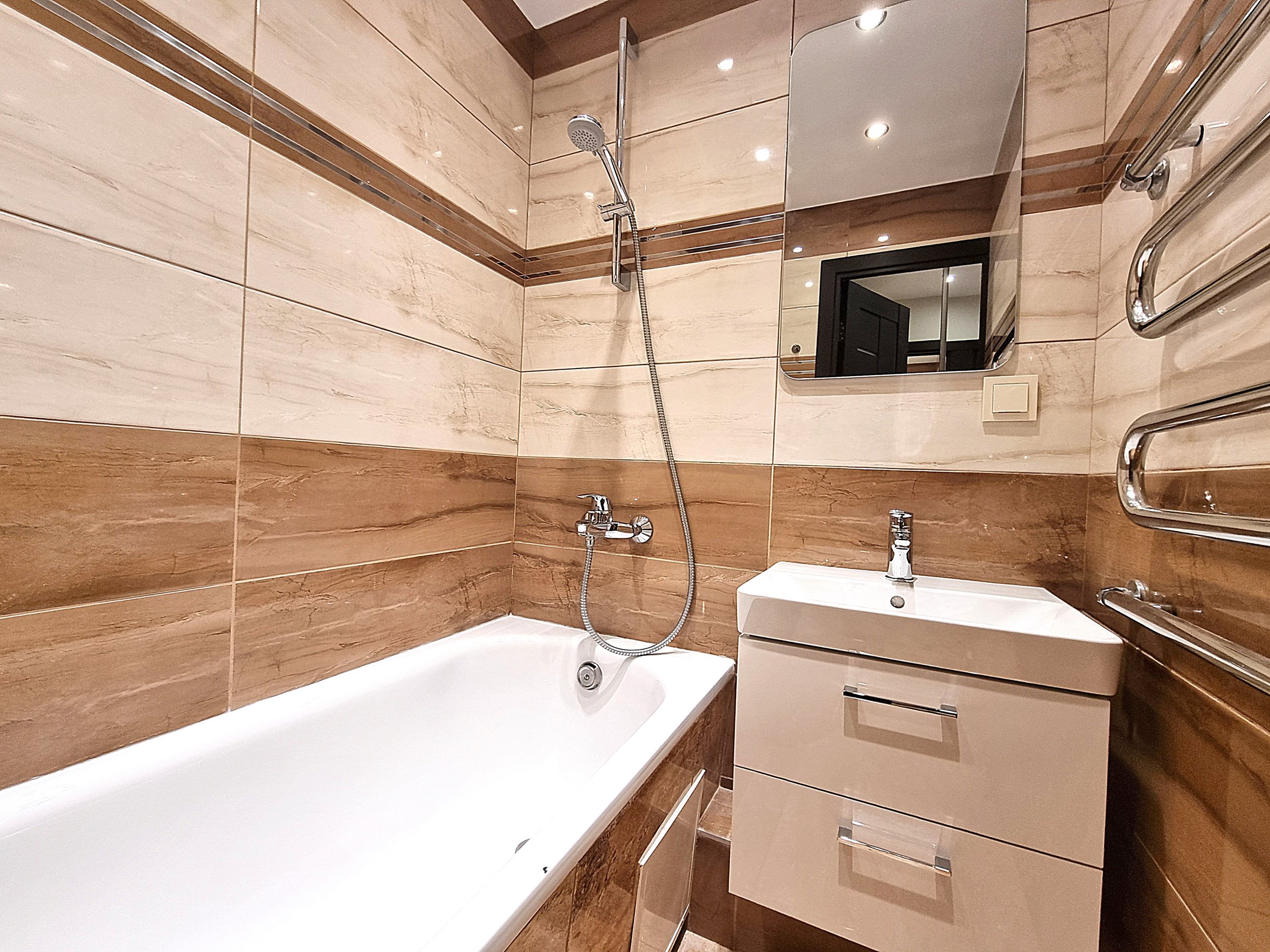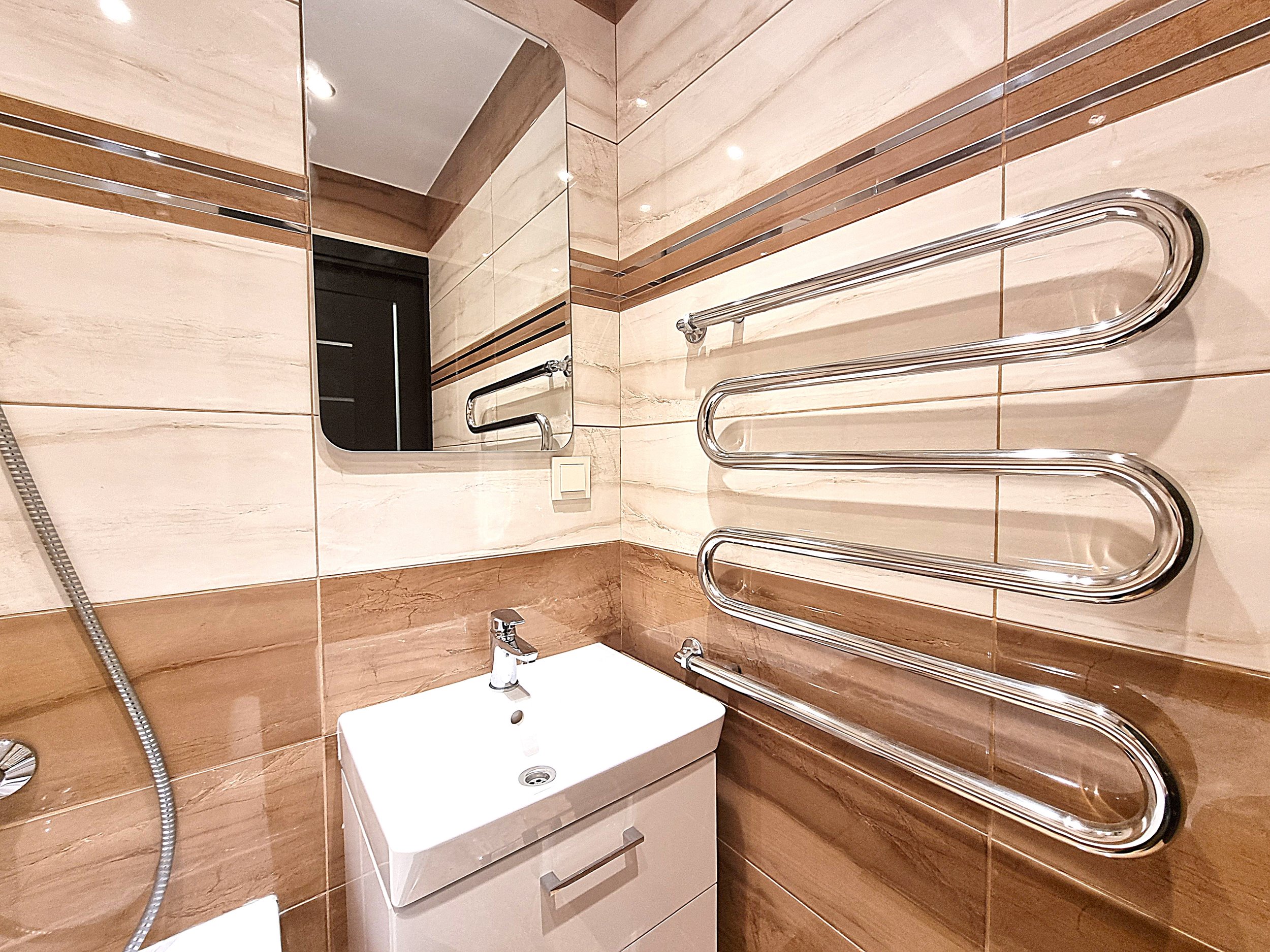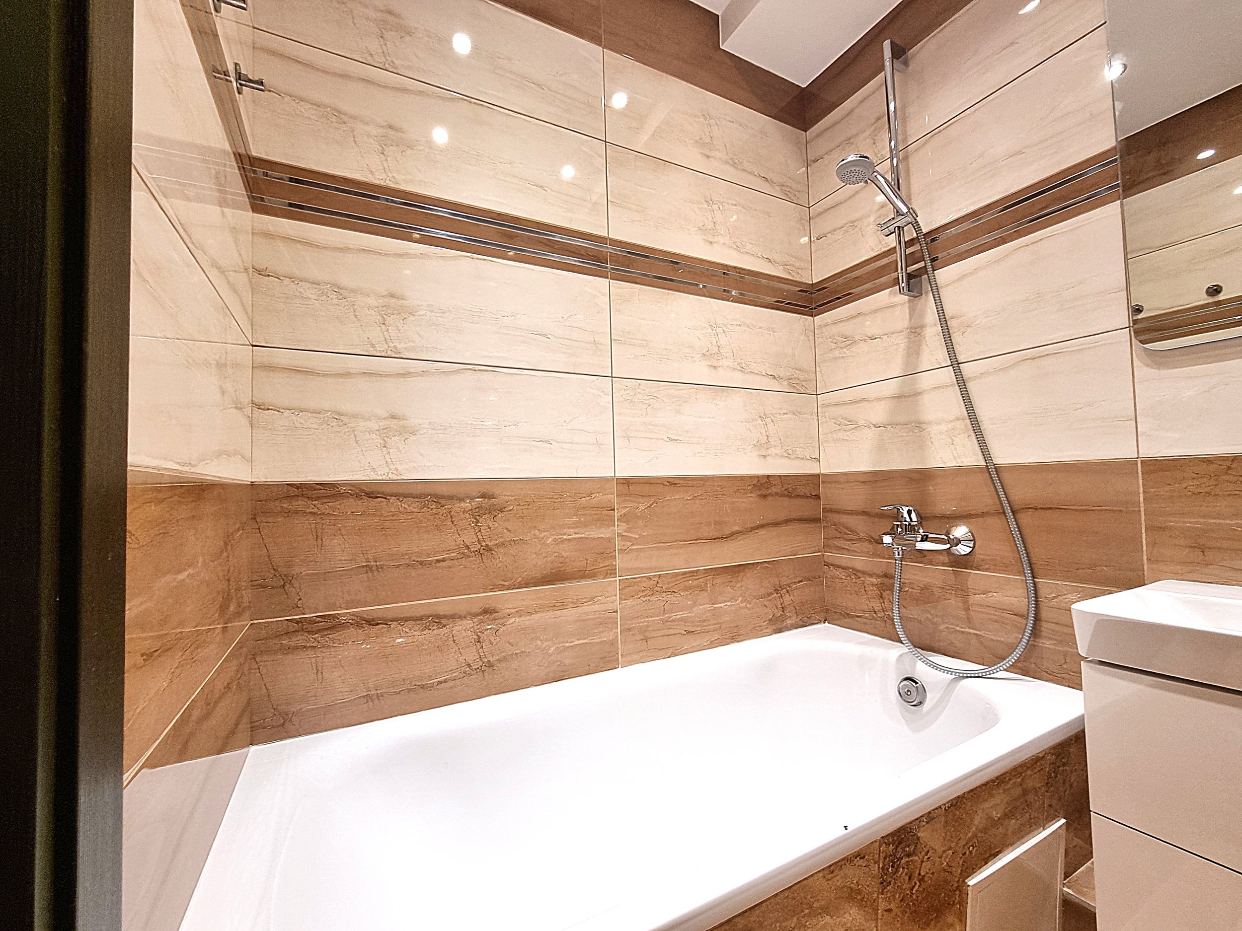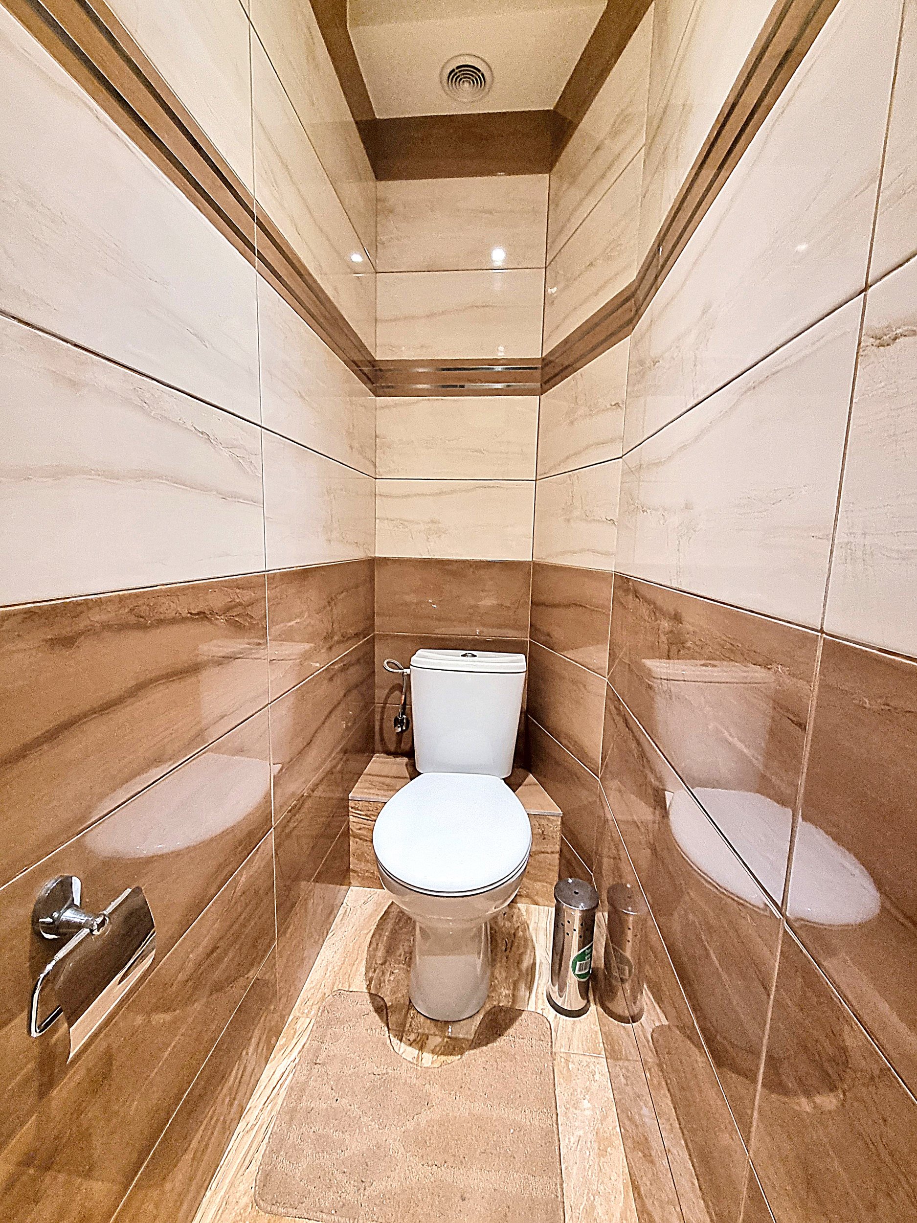 • Prieškambaryje erdvi sieninė spinta iki pat lubų.