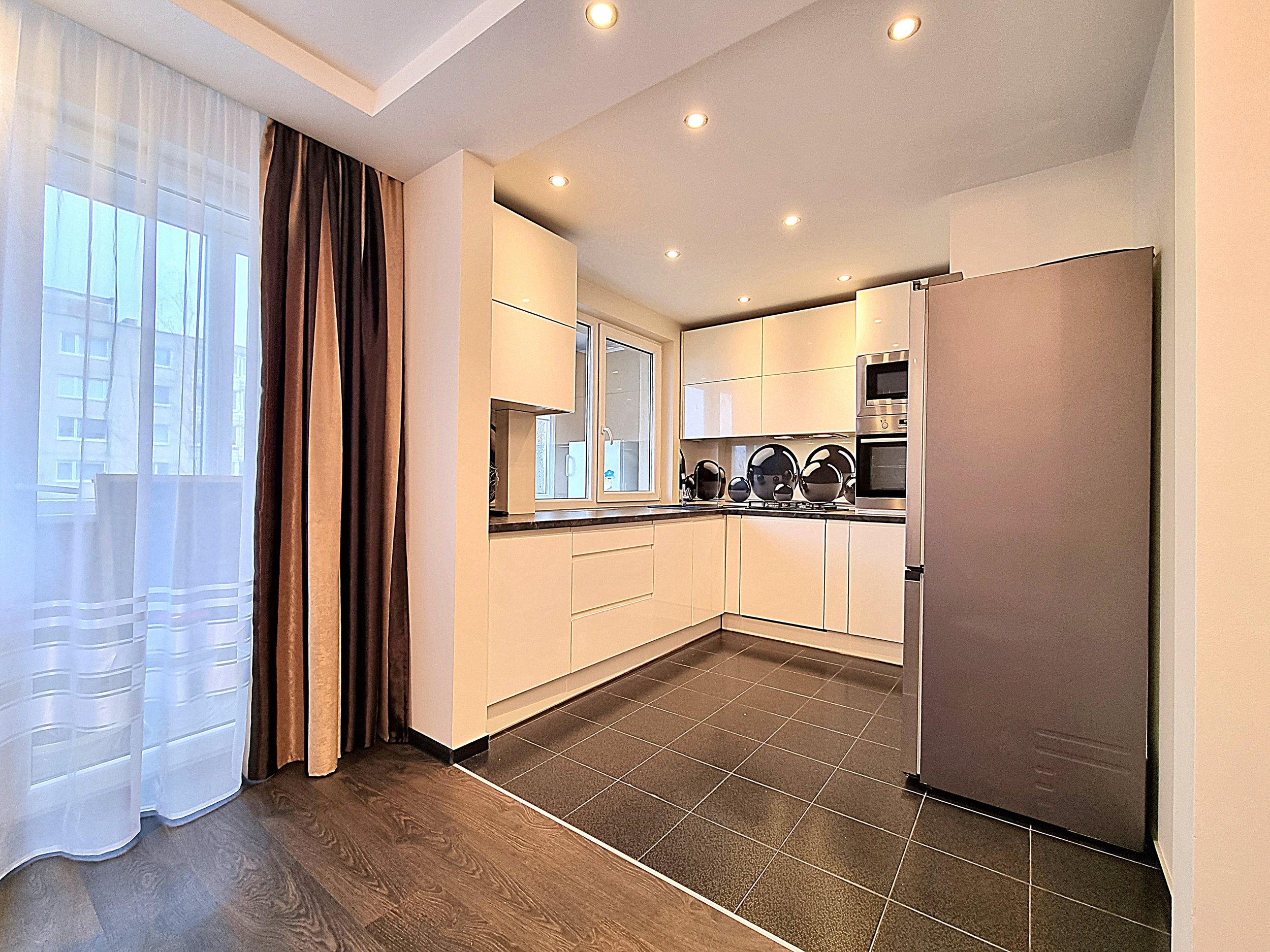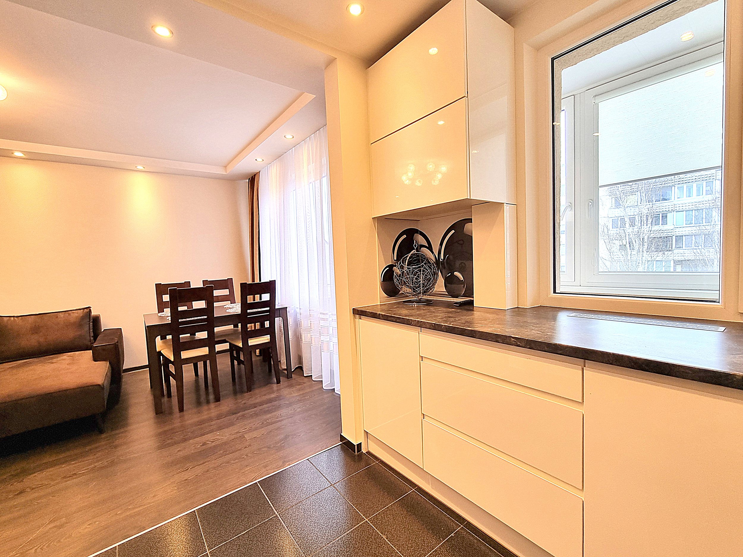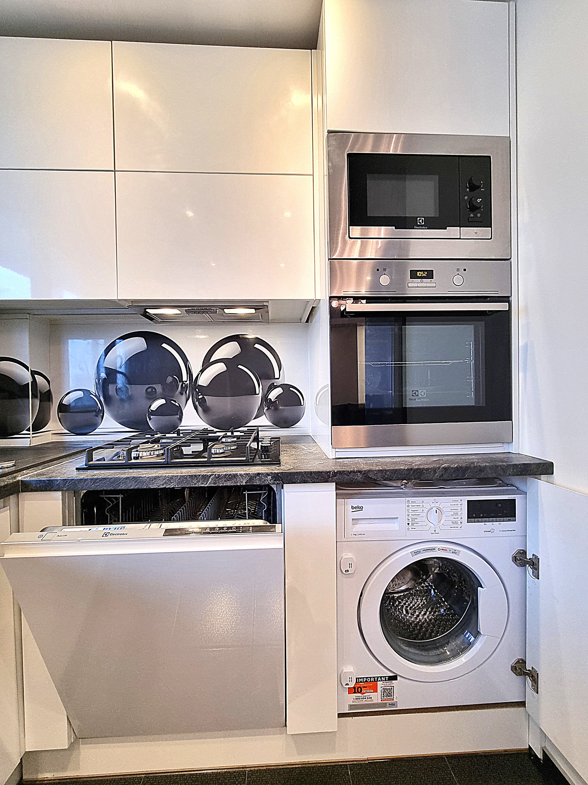 • Butas nuomojamas su visais nuotraukose matomais baldais ir buitine technika (orkaitė, šaldytuvas, mikrobangų krosnelė, indaplovė, skalbimo mašina), minimaliais virtuvės indais (įrankiai, lėkštės, puodeliai).