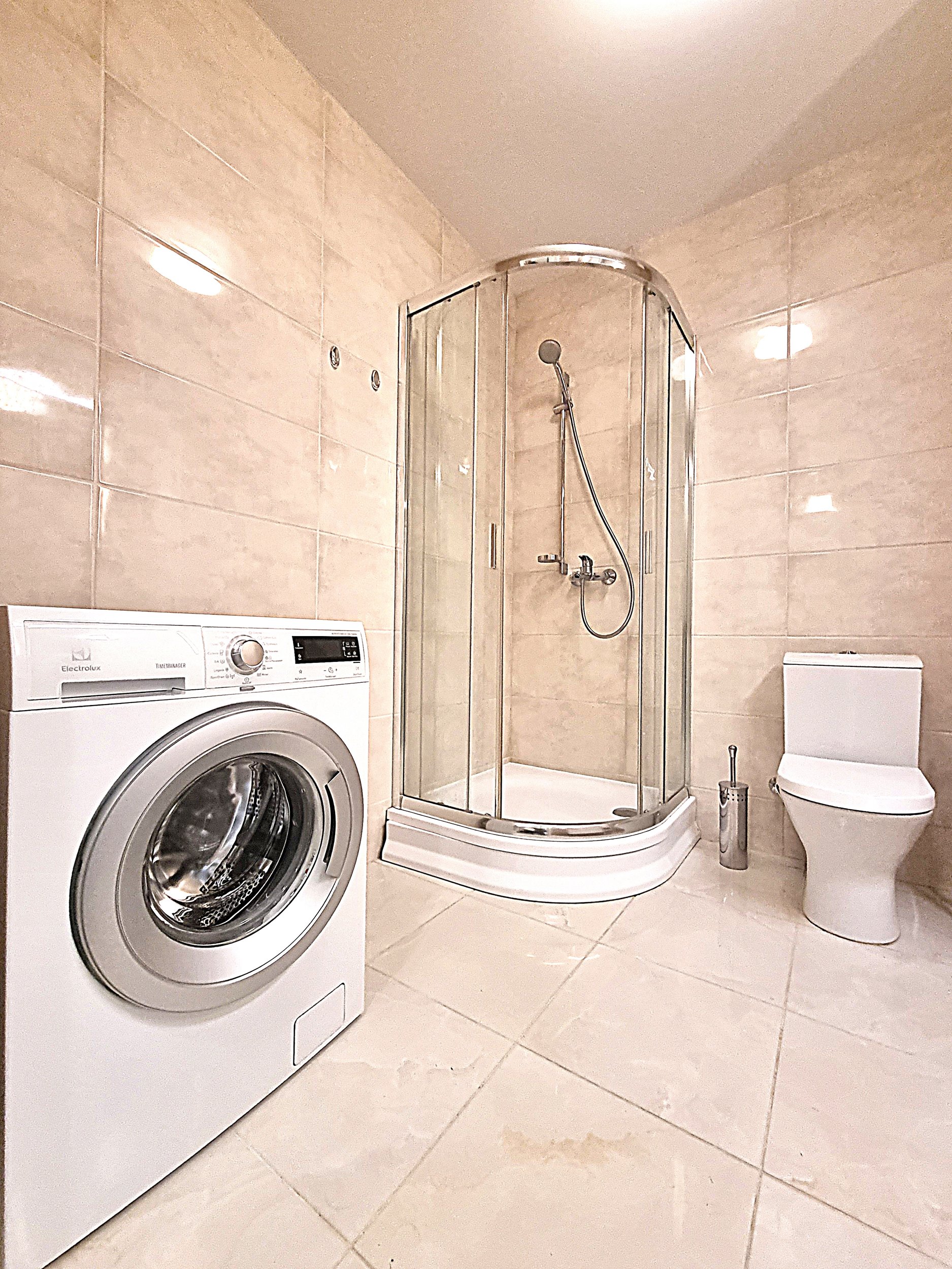 • Vonioje yra skalbimo mašina.