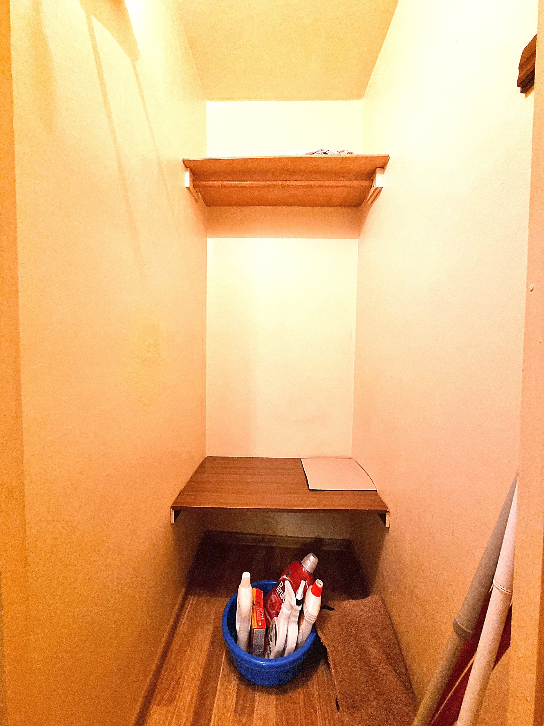 • Prieškambaryje erdvi sieninė spinta iki pat lubų.