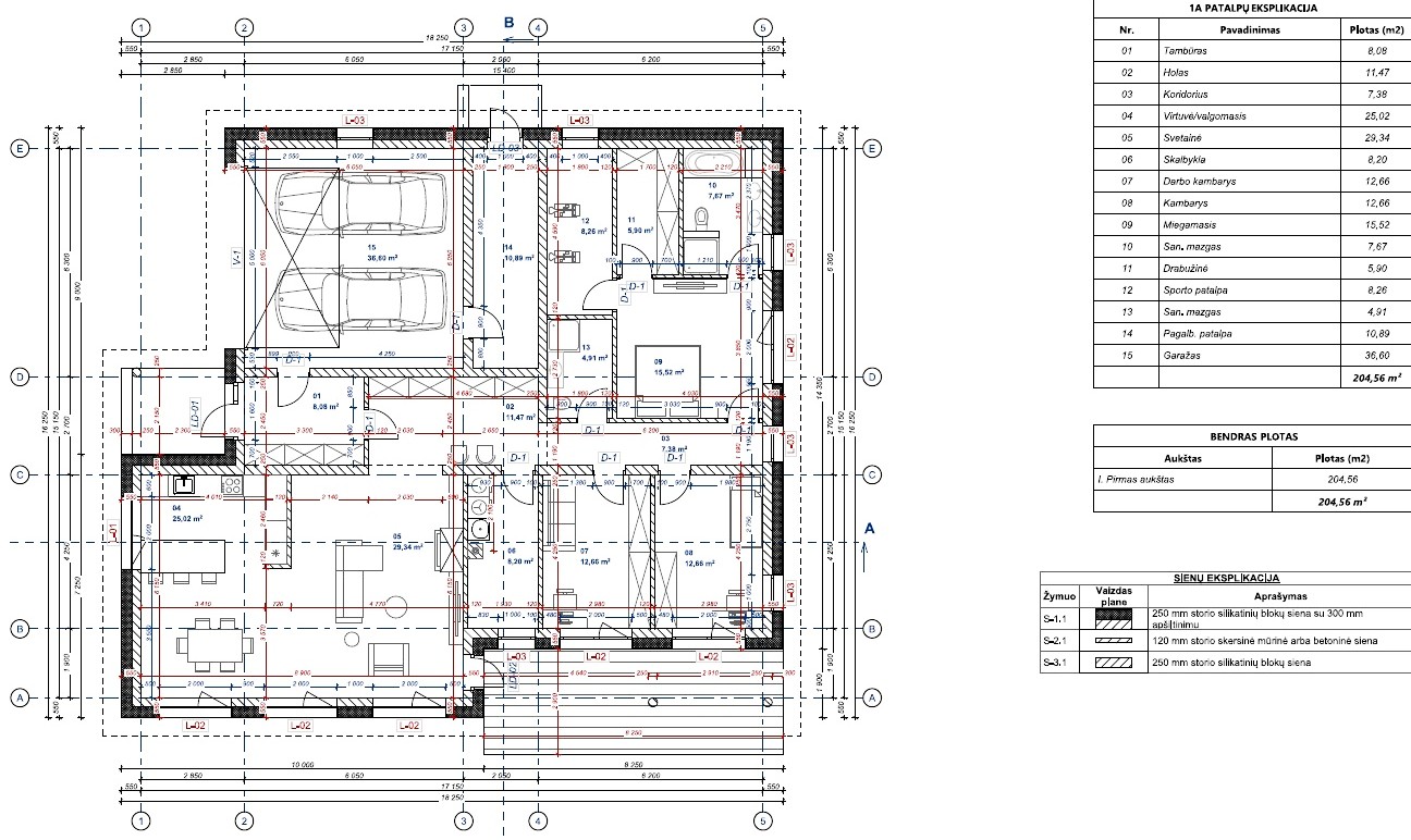 Kambarių skaičius: 6 ( gali būti net 4 miegamieji kambariai arba kaip numatyta 2 iš jų ofisas ir sporto patalpa);