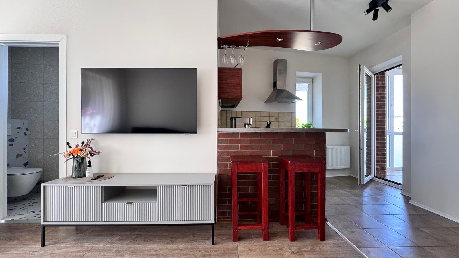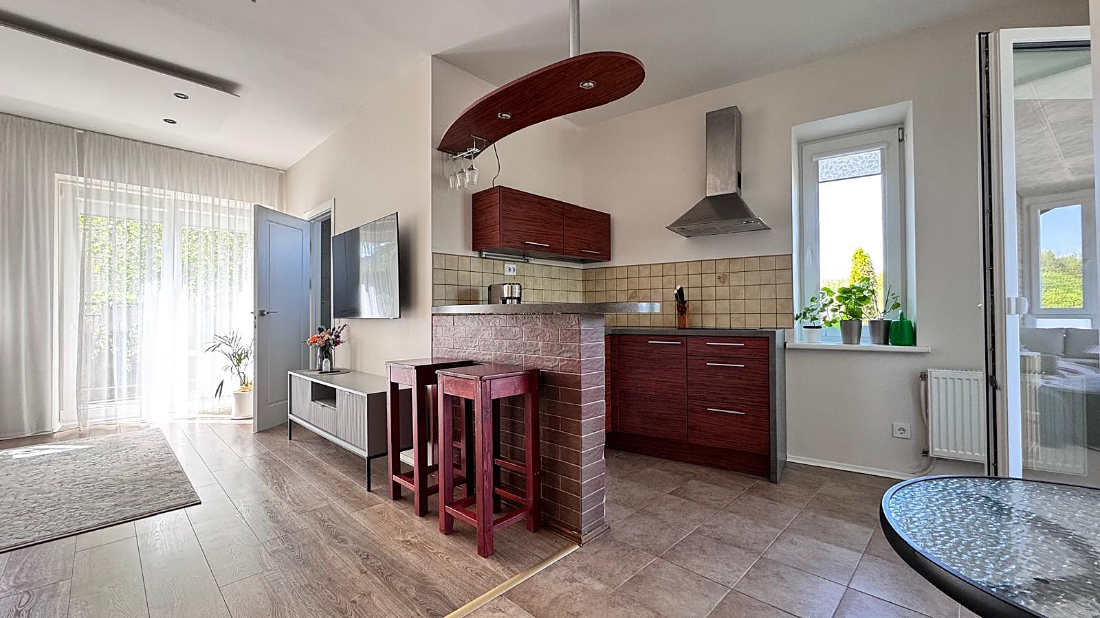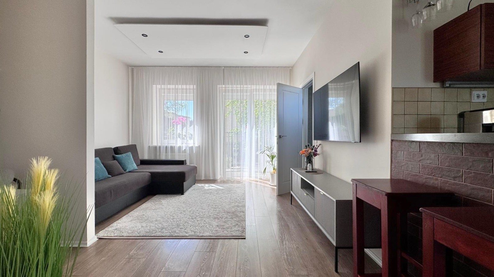 Parduodamas su visais esamais baldais ir buitine technika išskyrus TV.