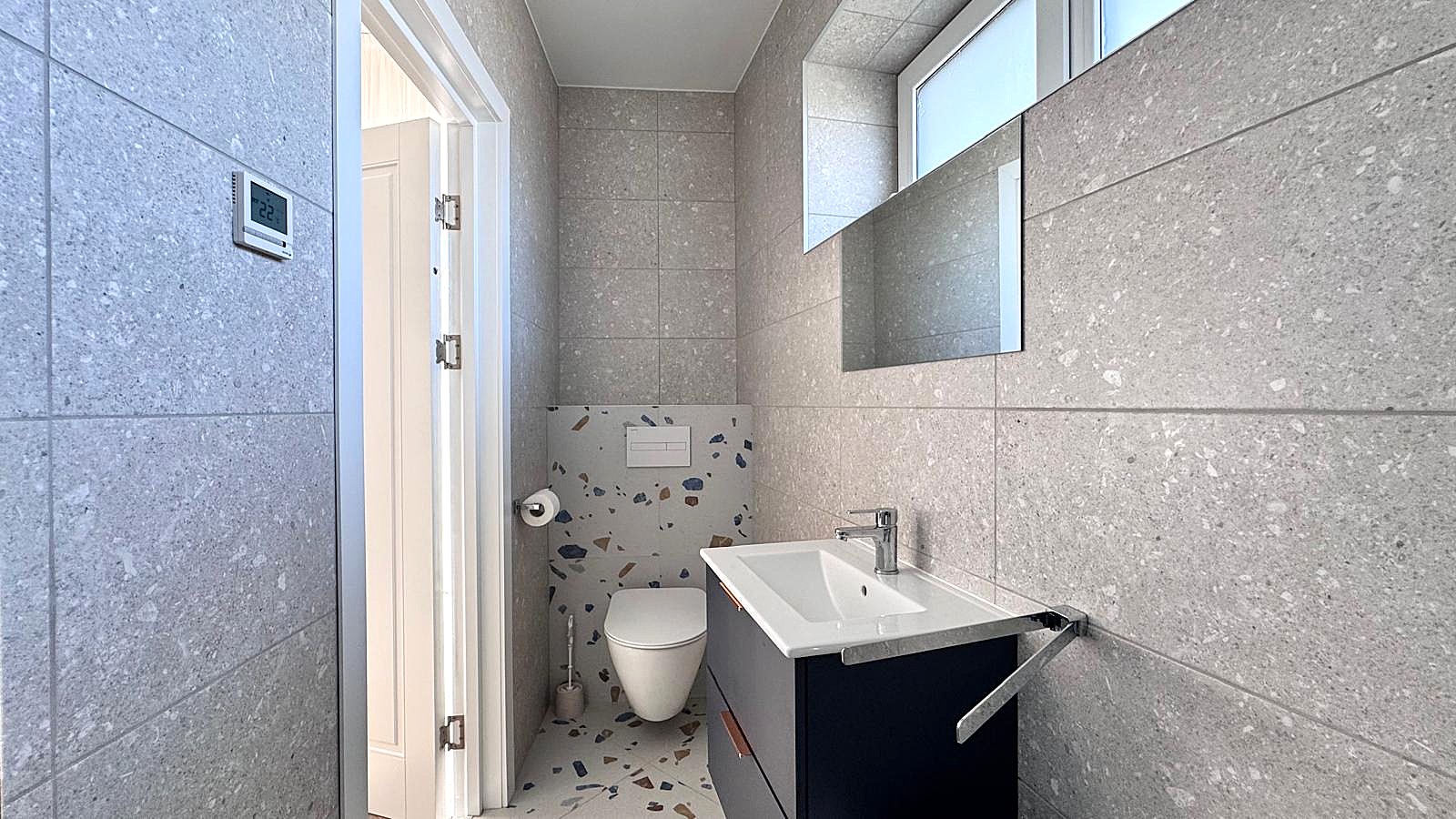 Vonioje įrengtos el. šildomos grindys su programuojamu valdikliu ant sienos;