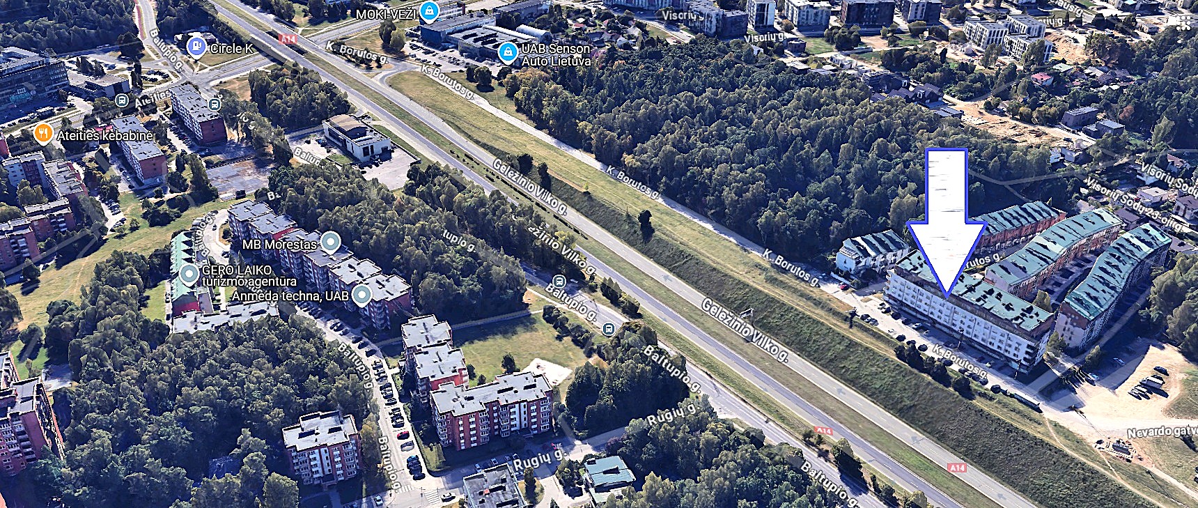 Patogi aplinka: šalia namo miškelis, žaliame tik kelių namų ir kotedžų kvartale, todėl mėgausitės ramybe ir privatumu. Namas šalia naujai išasfaltuotos K. Borutos gatvės, taip pat naujai įrengtos automobilių stovėjimo vietos, o reikalinga infrastruktūra - mokyklos, vaikų darželiai, restoranai, prekybos centrai, auto servisai, medicinos įstaigos, grožio studijos, bankai, sporto klubas, degalinės – viskas tik kelių minučių atstumu. Šalia Geležinio vilko gatvė užtikrinanti puikų susisiekimą su Vilniaus centru, visais mikrorajonais ir užmiesčiu.