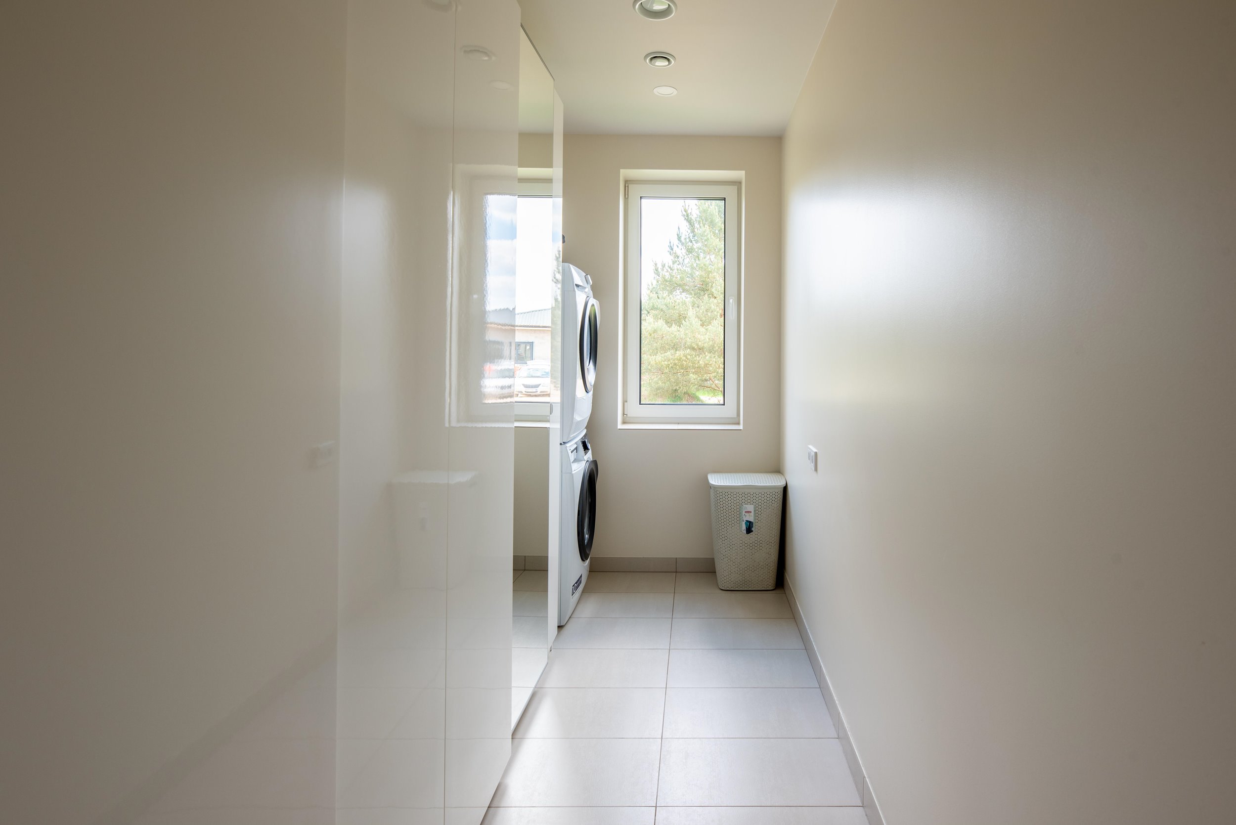 Šviesūs kambariai, vitrininiai langai rytinėje, pietinėje ir vakarinėje pusėse;