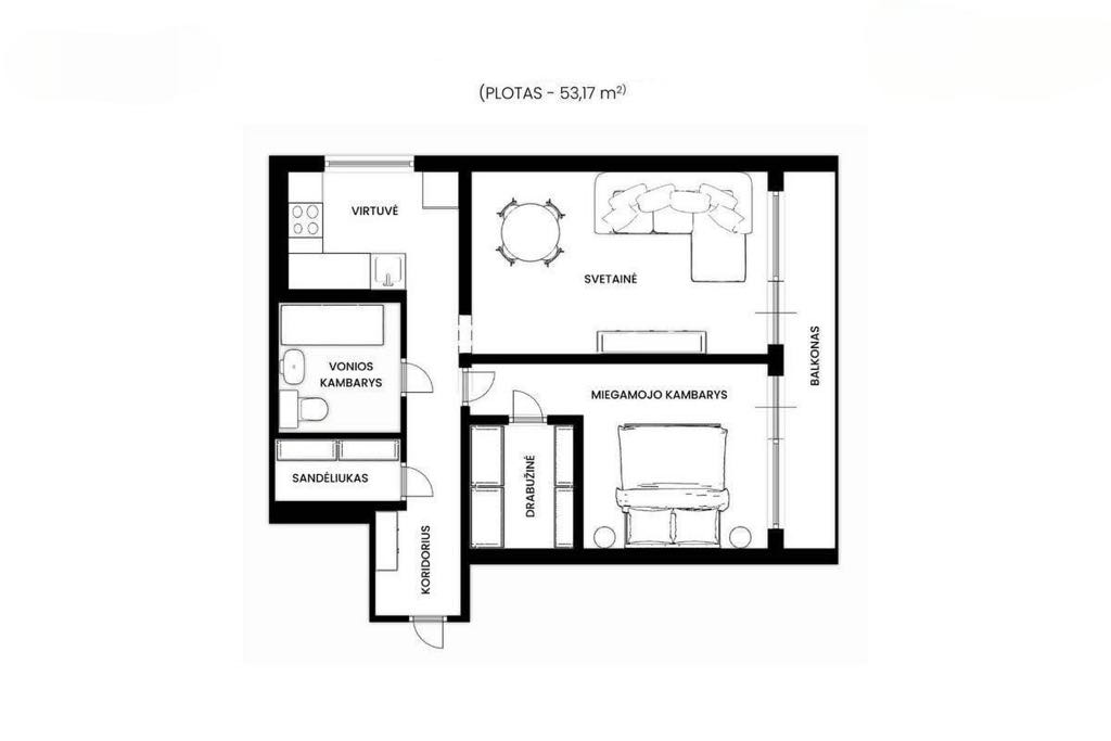 2 atskiri kambariai + erdvus įstiklintas balkonas – puikiai tinka rytinei kavai ar vakariniam poilsiui;