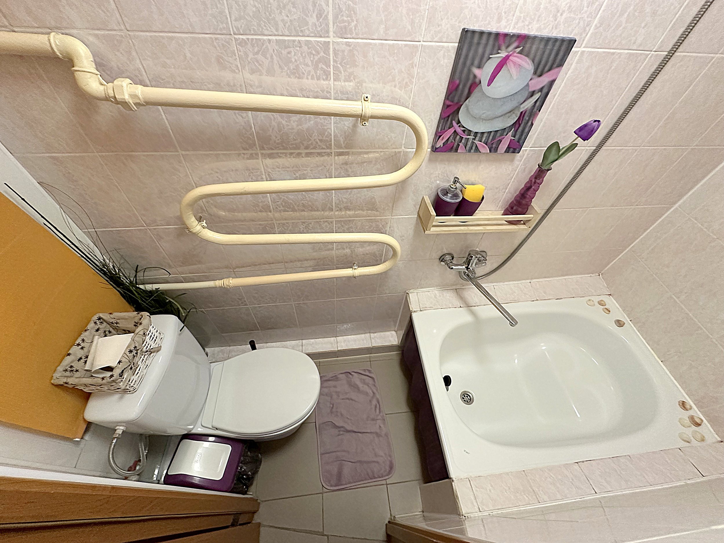 Butas penktame aukšte iš devynių. Funkcionali virtuvė, jaukus bei šviesus kambarys. Vonia ir WC kartu. Erdvus balkonas.